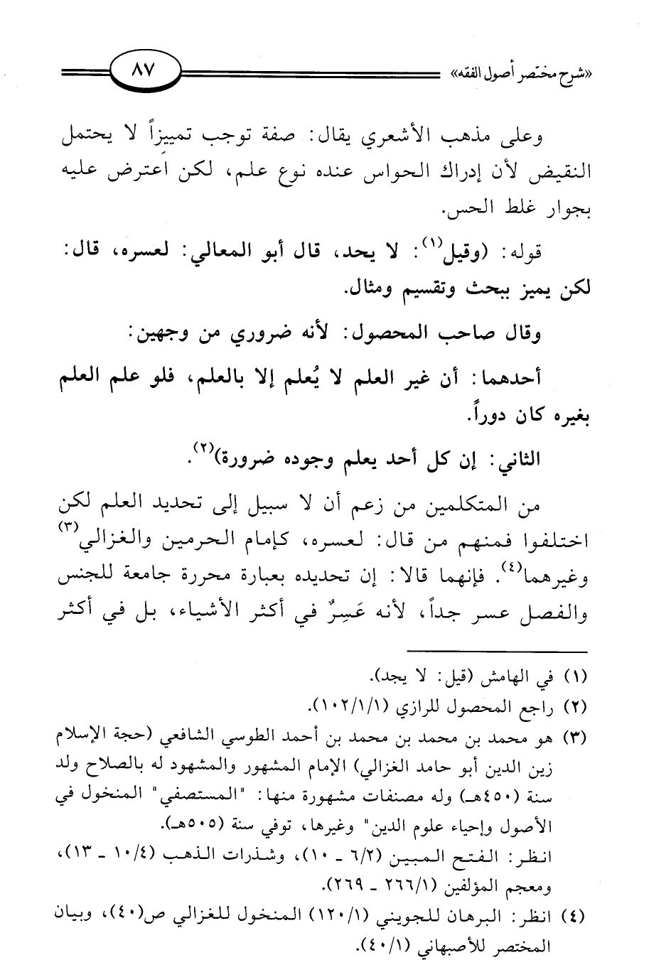 (¬4) انظر: البرهان للجويني (1/ 120) المنخول للغزالي ص (40)، وبيان المختصر للأصبهاني (1/ 40).