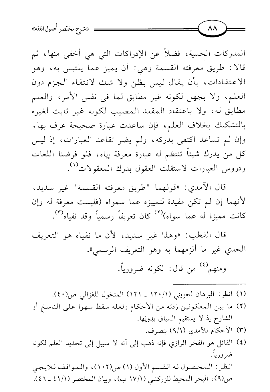 (¬4) القائل هو الفخر الرازي فإنه ذهب إلى أنه لا سبيل إلى تحديد العلم لكونه ضروريًا.