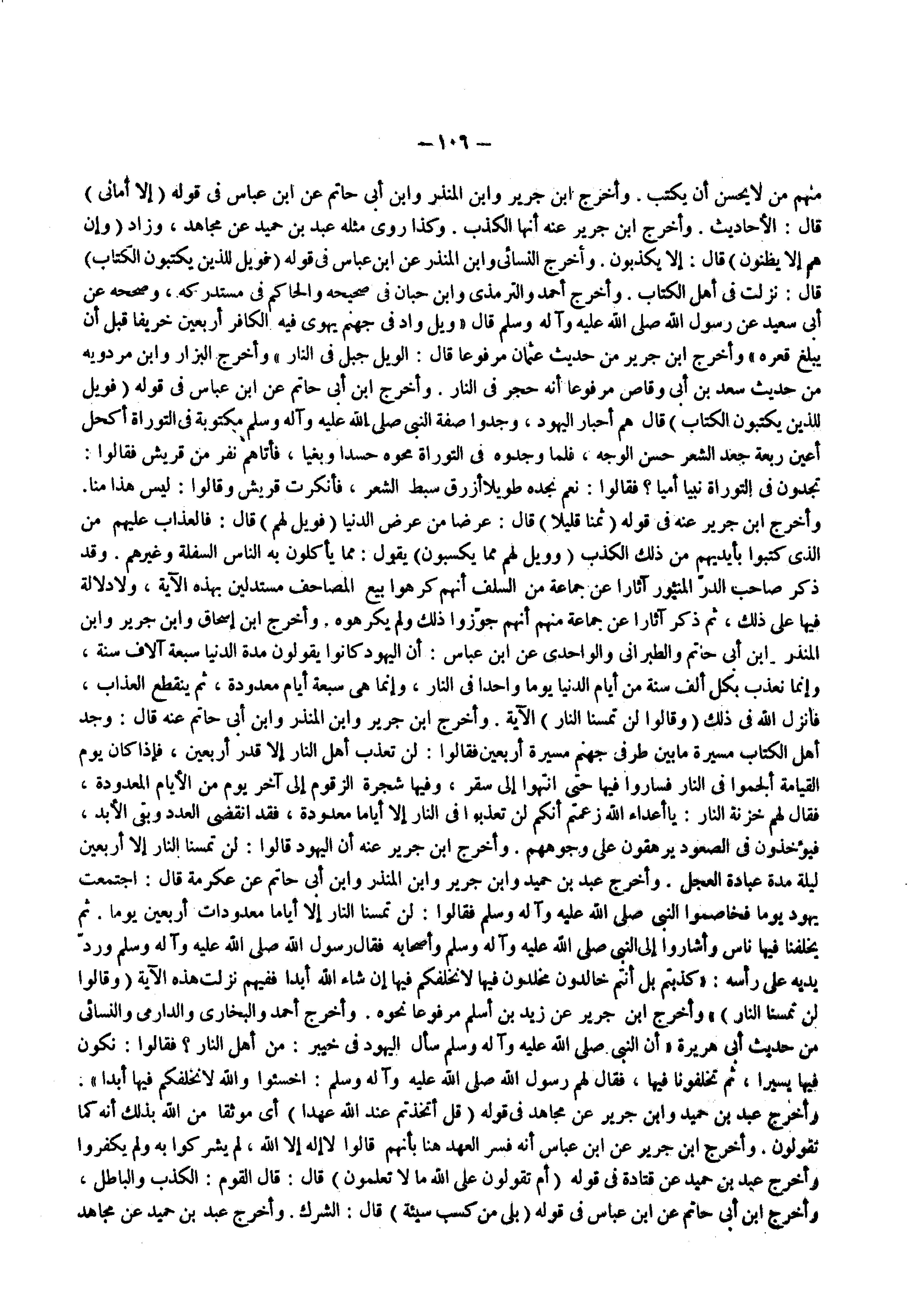 منهم من لا يحسن أن يكتب وأخرج ابن جرير وابن المنذر وابن أبي حاتم عن ابن عباس في قوله ) إلا أماني ( قال الأحاديث وأخرج ابن جرير عنه أنها الكذب وكذا روى مثله عبد بن حميد عن مجاهد وزاد ) وإن هم إلا يظنون ( قال إلا يكذبون وخرج النسائي وابن المنذر عن ابن عباس في قوله ) فويل للذين يكتبون الكتاب ( قال نزلت في أهل الكتاب وأخرج أحمد والترمذي وابن حبان في صحيحه والحاكم في مستدركه وصححه عن أبي سعيد عن رسول الله ( صلى الله عليه وسلم ) قال ( ويل واد في جهنم يهوي فيه الكافر أربعين خريفا قبل أن يبلغ قعره ) وأخرج ابن جرير من حديث عثمان مرفوعا قال الويل جبل في النار ) وأخرج البزار وابن مردويه من حديث سعد بن أبي وقاص مرفوعا أنه حجر في النار وأخرج ابن أبي حاتم عن ابن عباس في قوله ) فويل للذين يكتبون الكتاب ( قال هم أحبار اليهود وجدوا صفة النبي ( صلى الله عليه وسلم ) مكتوبة في التوراة أكحل أعين ربعة جعد الشعر حسن الوجه فلما وجدوه في التوراة محوه حسدا وبغيا فأتاهم نفر من قريش فقالوا تجدون في التوراة نبيا أميا فقالوا نعم نجده طويلا أزرق سبط الشعر فأنكرت قريش وقالوا ليس هذا منا وأخرج ابن جرير عنه في قوله ) ثمنا قليلا ( قال عرضا من عرض الدنيا ) فويل لهم ( قال فالعذاب عليهم من الذي كتبوا بأيديهم من ذلك الكذب ) وويل لهم مما يكسبون ( يقول مما يأكلون به الناس السفلة عندهم وقد ذكر صاحب الدر المنثور آثارا عن جماعة من السلف أنهم كرهوا بيع المصاحف مستدلين بهذه الآية ولا دلالة فيها على ذلك ثم ذكر آثارا عن جماعة منهم أنهم جوزوا ذلك ولم يكرهوه وأخرج ابن إسحاق وابن جرير وابن المنذر وابن أبي حاتم والطبراني والواحدي عن ابن عباس أن اليهود كانوا يقولون مدة الدنيا سبعة آلاف سنة وإنما نعذب بكل ألف سنة من أيام الدنيا يوما واحدا في النار وإنما هي سبعة أيام معدودة ثم ينقطع العذاب فأنزل الله في ذلك ) وقالوا لن تمسنا النار ( الآية وأخرج ابن جرير وابن المنذر وابن أبي حاتم عنه قال وجد أهل الكتاب مسيرة ما بين طرفي جهنم مسيرة أربعين فقالوا لن تعذب أهل النار إلا قدر أربعين فإذا كان يوم القيامة ألجموا في النار فساروا فيها حتى انتهوا إلى سقر وفيها شجرة الزقوم إلى آخر يوم من الأيام المعدودة فقال لهم خزنة النار يا أعداء الله زعمتم أنكم لن تعذبوا في النار إلا أياما معدودة فقد انقضى العدد وبقي الأبد فيؤخذون في الصعود يرهقون على وجوههم وأخرج ابن جرير عنه أن اليهود قالوا لن تمسنا النار إلا أربعين ليلة مدة عبادة العجل وأخرج عبد بن حميد وابن جرير وابن المنذر وابن أبي حاتم عن عكرمة قال اجتمعت يهود يوما فخاصموا النبي ( صلى الله عليه وسلم ) فقالوا لن تمسنا النار إلا أياما معدودات أربعين يوما ثم يخلفنا فيها ناس وأشاروا إلى النبي ( صلى الله عليه وسلم ) وأصحابه فقال رسول الله ( صلى الله عليه وسلم ) ورد يديه على رأسه ( كذبتم بل أنتم خالدون مخلدون فيها لانخلفكم فيها إن شاء الله أبدا ففيهم نزلت هذه الآية ) وقالوا لن تمسنا النار ( ) وأخرج ابن جرير عن زيد بن أسلم مرفوعا نحوه واخرج أحمد والبخاري والدارمي والنسائي من حديث أبي هريرة ( أن النبي ( صلى الله عليه وسلم ) سأل اليهود في خيبر من أهل النار فقالوا نكون فيها يسيرا ثم تخلفونا فيها فقال لهم رسول الله ( صلى الله عليه وسلم ) اخسئوا والله لا نخلفكم فيها أبدا ) وأخرج عبد بن حميد وابن جرير عن مجاهد في قوله ) قل أتخذتم عند الله عهدا ( أي موثقا من الله بذلك أنه كما تقولون وأخرج ابن جرير عن ابن عباس أنه فسر العهد هنا بأنهم قالوا لا إله إلا الله لم يشركوا به ولم يكفروا وأخرج عبد بن حميد عن قتادة في قوله ) أم تقولون على الله ما لا تعلمون ( قال قال القوم الكذب والباطل وأخرج ابن أبي حاتم عن ابن عباس في قوله ) بلى من كسب سيئة ( قال الشرك وأخرج عبدالله عن مجاهد