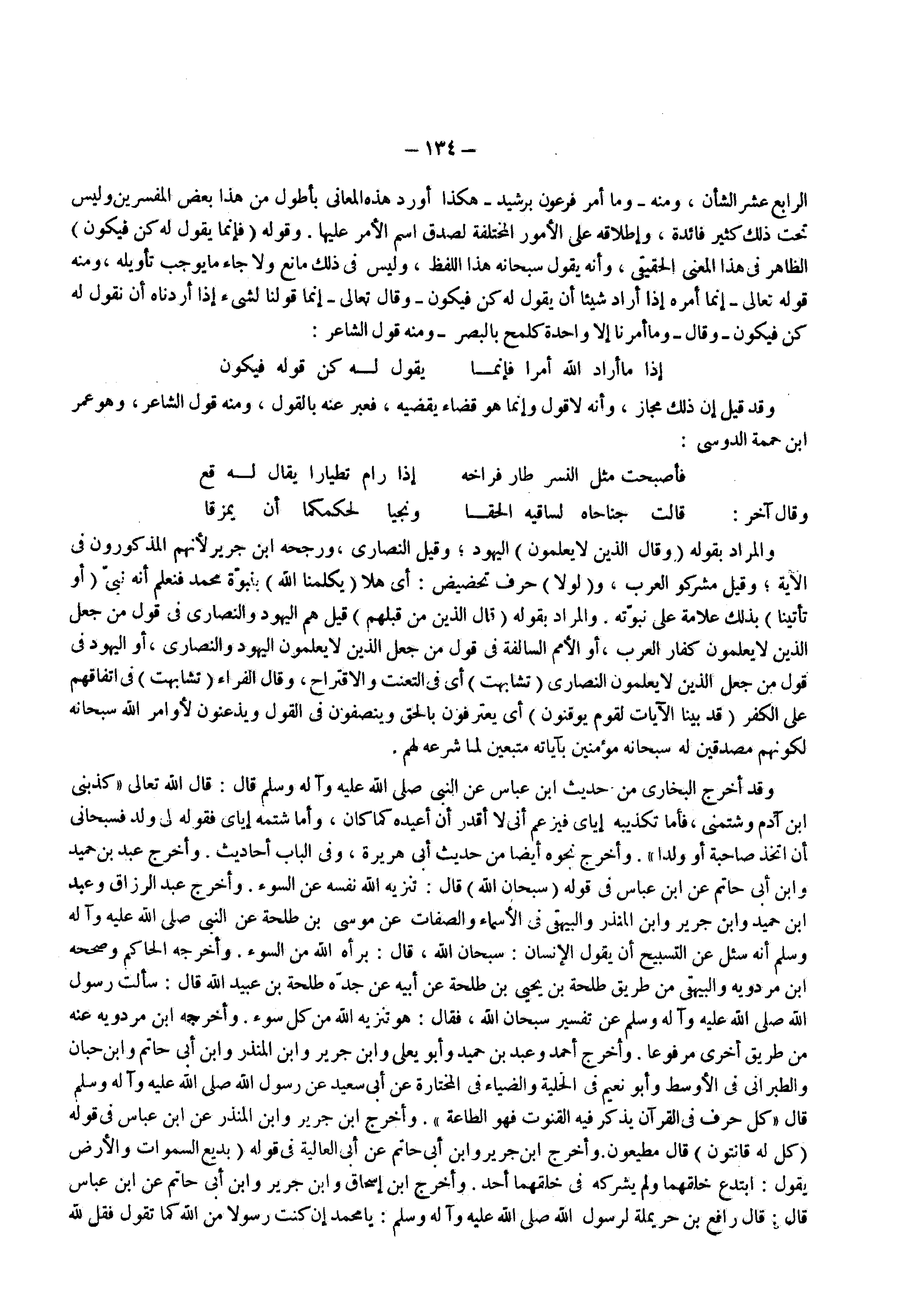 الرابع عشر الشأن ومنه ) وما أمر فرعون برشيد ( هكذا أورد هذه المعاني بأطول من هذا بعض المفسرين وليس تحت ذلك كثير فائدة وإطلاقه على الأمور المختلفة لصدق اسم الأمر عليها وقوله ) فإنما يقول له كن فيكون ( الظاهر في هذا المعنى الحقيقي وأنه يقول سبحانه هذا اللفظ وليس في ذلك مانع ولا جاء ما يوجب تأويله ومنه قوله تعالى ) إنما أمره إذا أراد شيئا أن يقول له كن فيكون ( وقال تعالى ) إنما قولنا لشيء إذا أردناه أن نقول له كن فيكون ( وقال ) وما أمرنا إلا واحدة كلمح بالبصر ( ومنه قول الشاعر إذا ما أراد الله امرا فإنما