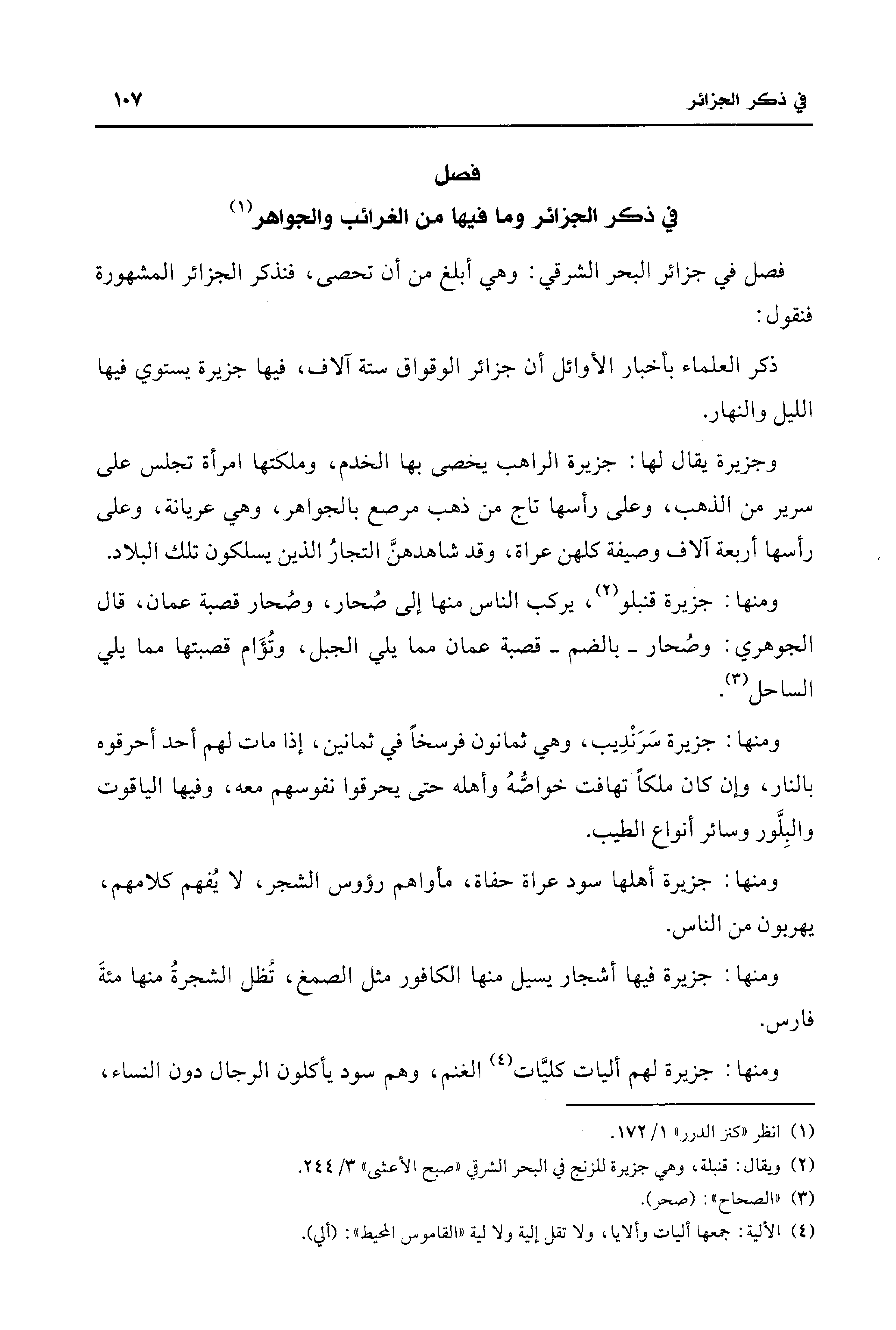 فصل في ذكر الجزائر وما فيها من الغرائب والجواهر (¬1)