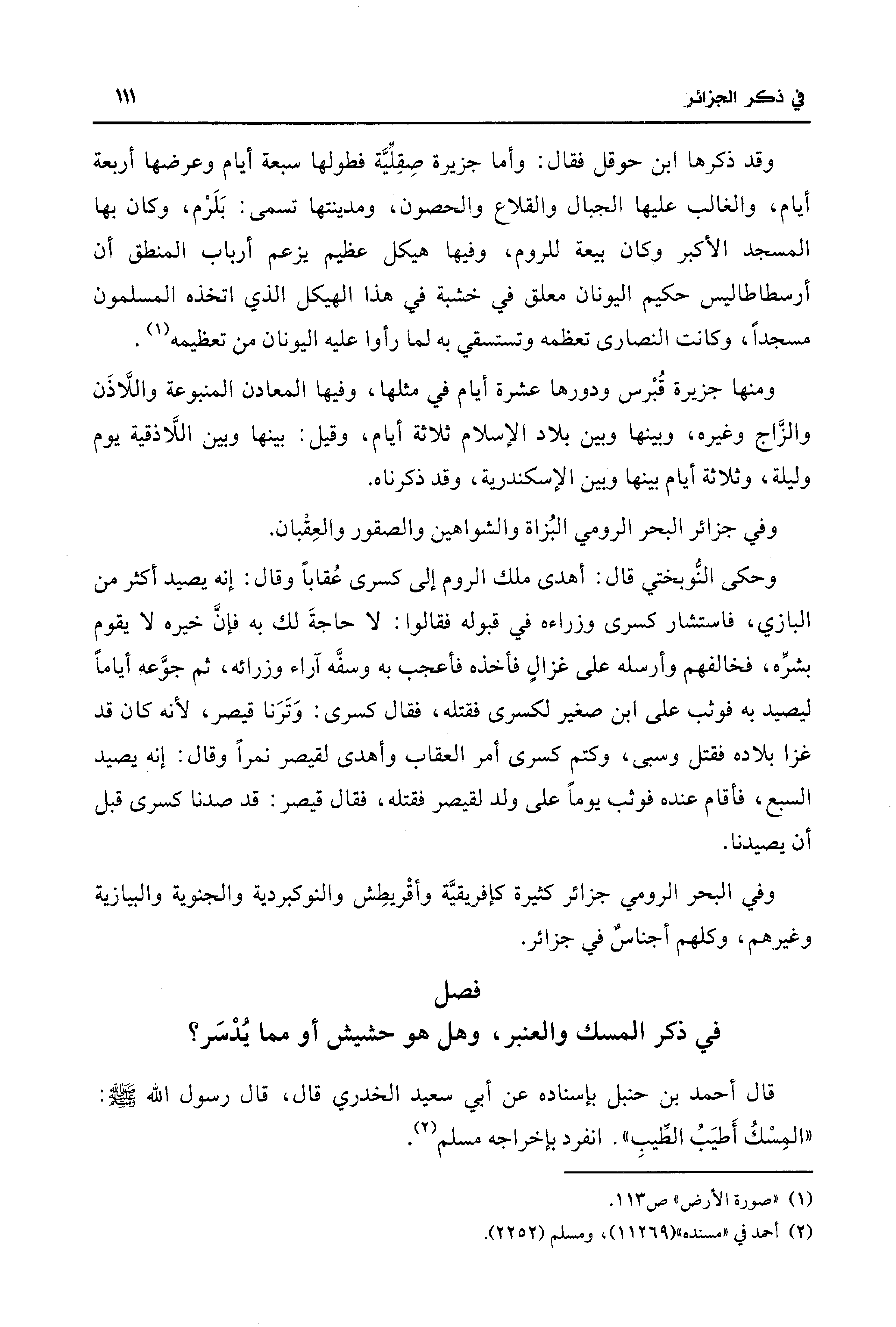 فصل في ذكر المسك والعنبر، وهل هو حشيش أو مما يُدْسَر؟