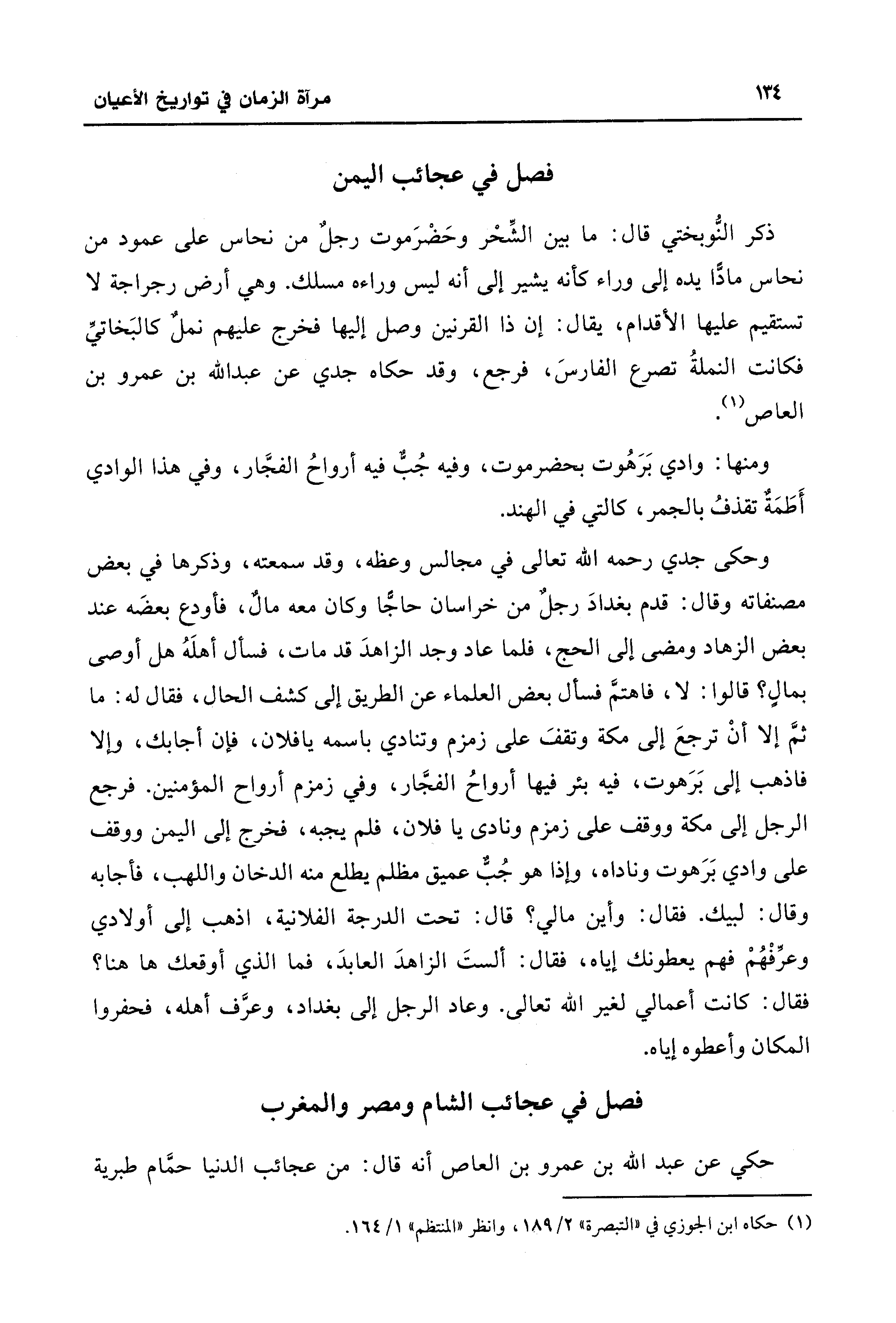 ومنها: وادي بَرَهُوت بحضرموت، وفيه جُبُّ فيه أرواحُ الفجَّار، وفي هذا الوادي أَطَمَةٌ تقذفُ بالجمر، كالتي في الهند.
