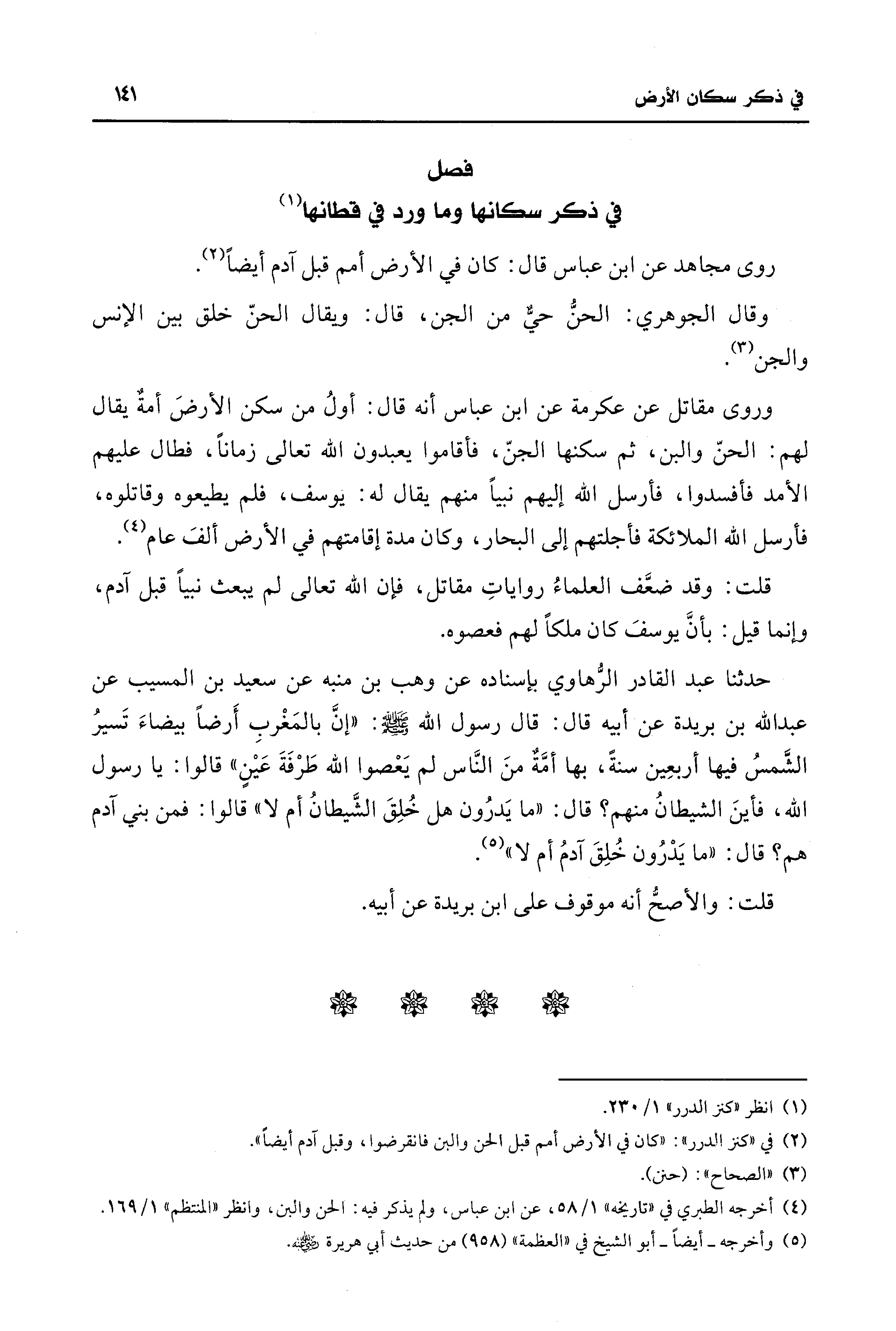 (¬2) في "كنز الدرر": "كان في الأرض أمم قبل الحن والبن فانقرضوا، وقبل آدم أيضًا".