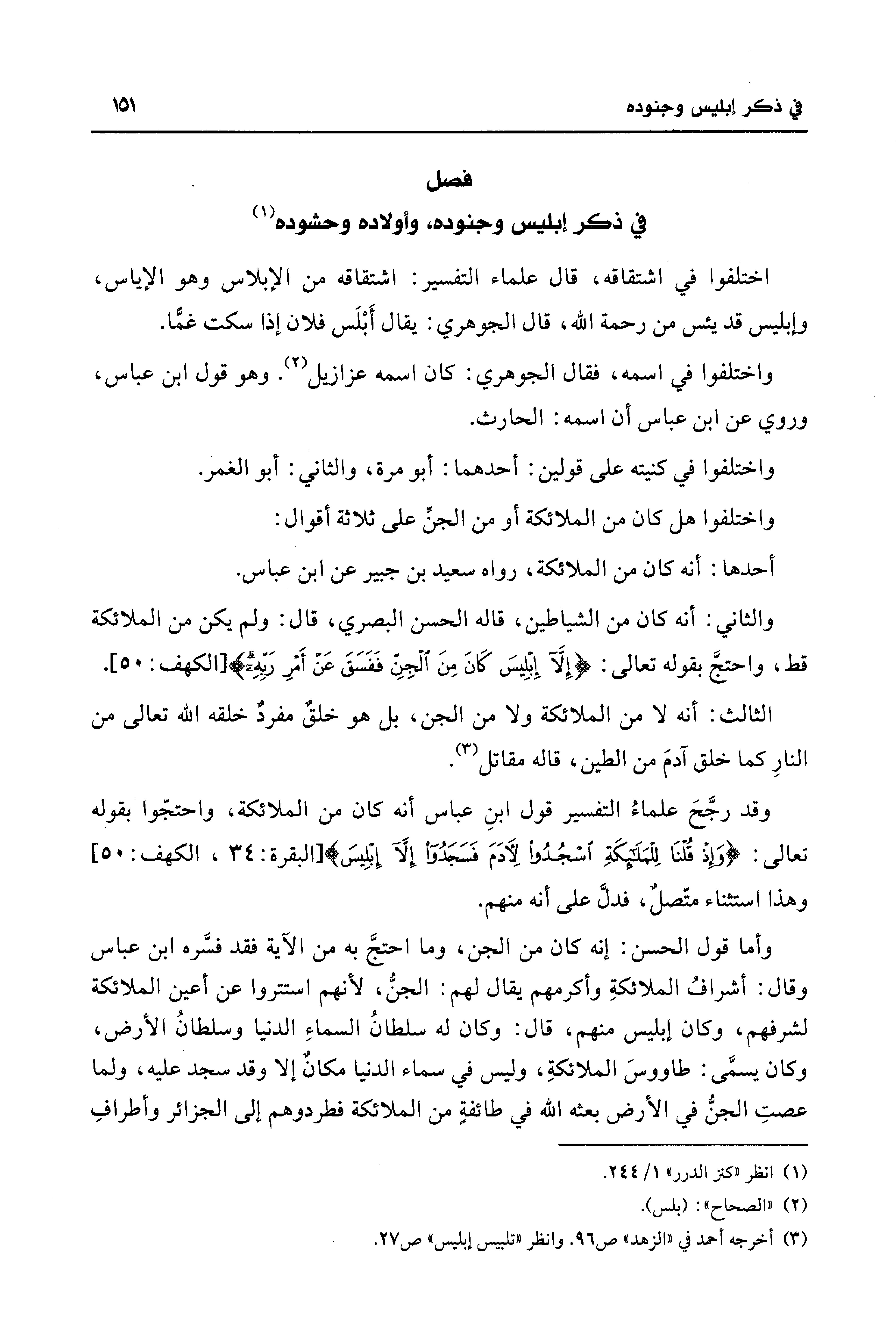 فصل في ذكر إبليس وجنوده، وأولاده وحشوده (¬1)