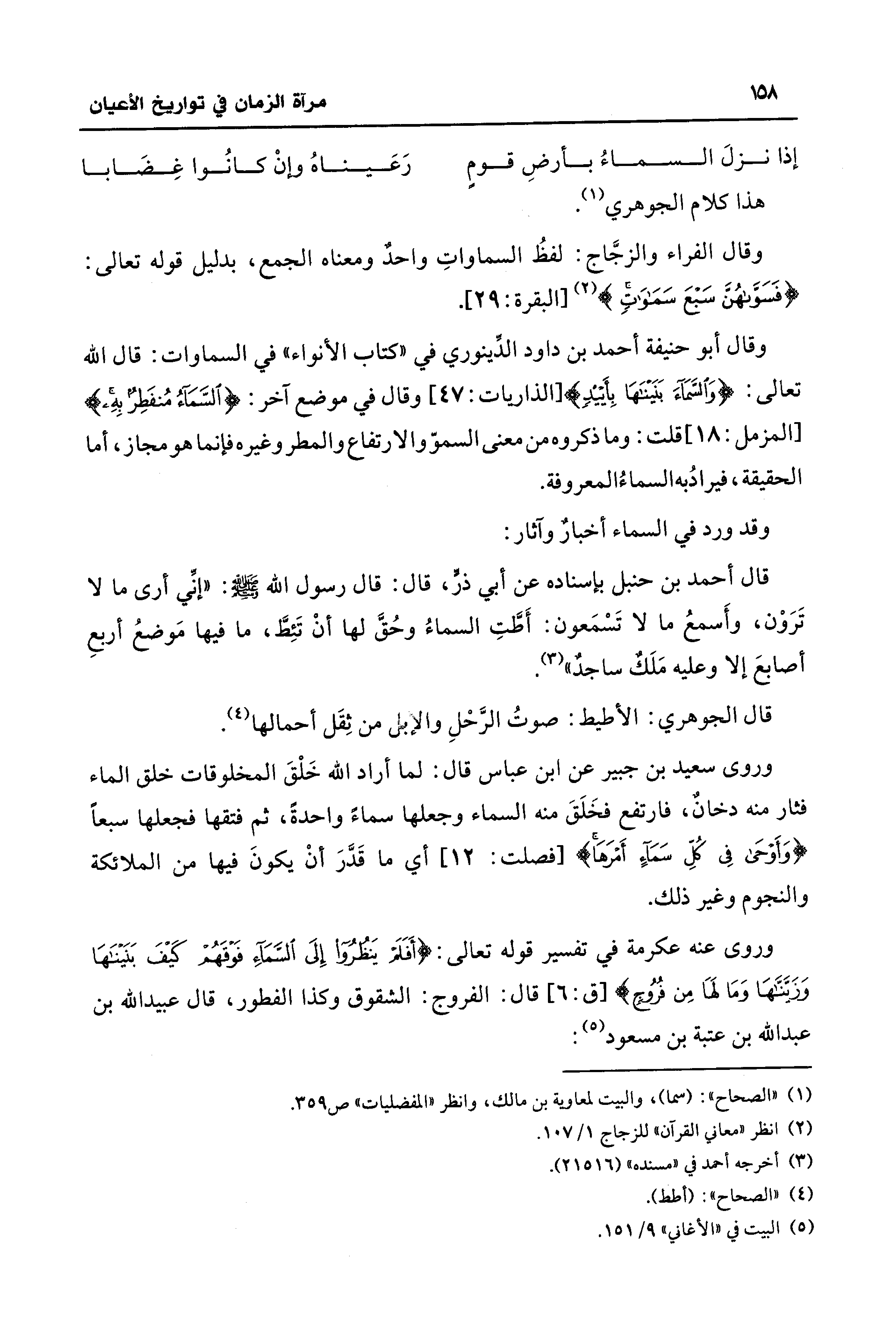 وقال أبو حنيفة أحمد بن داود الدِّينوري في "كتاب الأنواء" في السماوات: قال الله تعالى: {وَالسَّمَاءَ بَنَينَاهَا بِأَيدٍ} [الذاريات: 47] وقال في موضع آخر: {السَّمَاءُ مُنْفَطِرٌ بِهِ} [المزمل: 18] قلت: وما ذكروه من معنى السموّ والارتفاع والمطر وغيره فإنما هو مجاز، أما الحقيقة، فيرادُ به السماءُ المعروفة.
