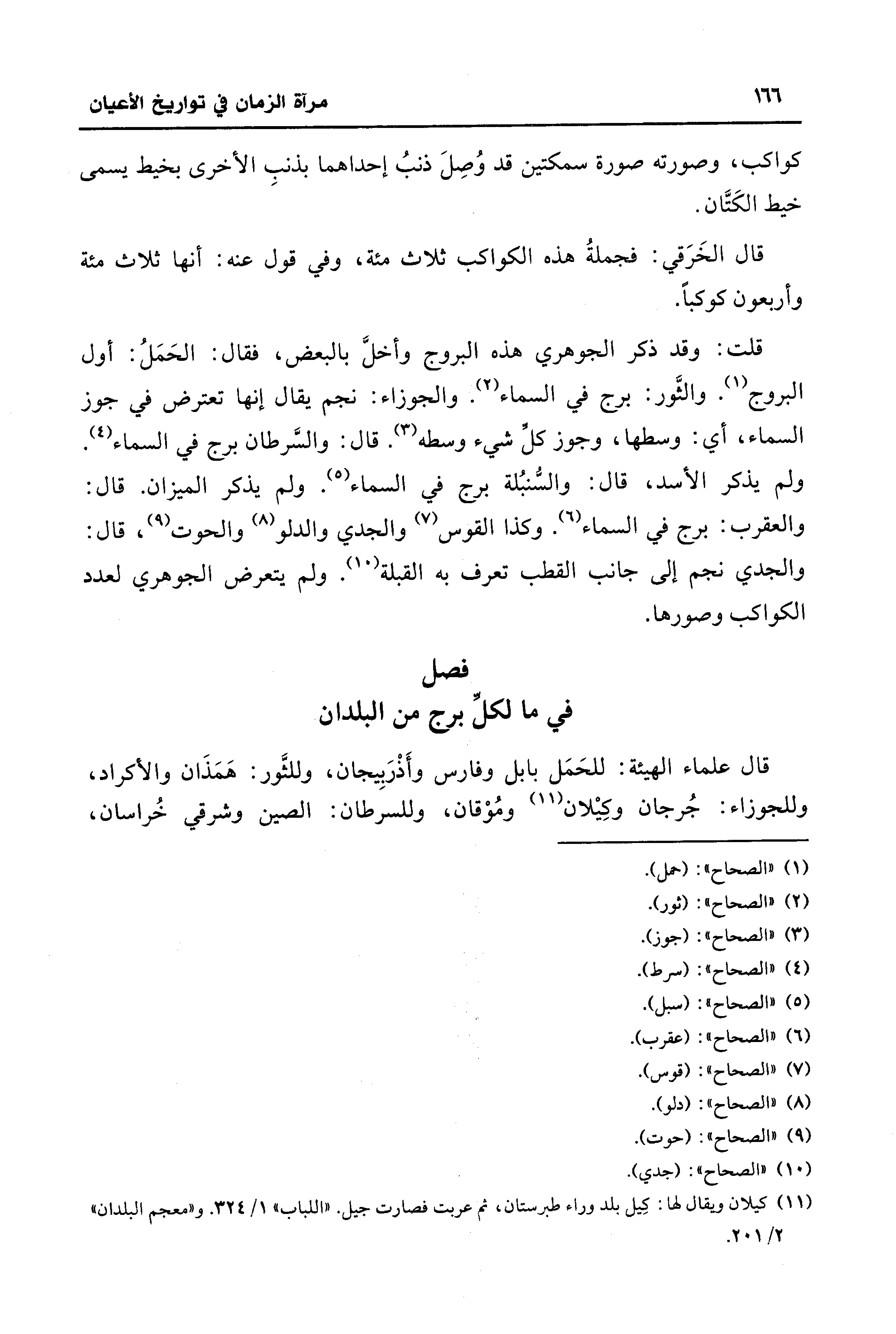 قال علماء الهيئة: للحَمَل بابل وفارس وأَذْرَبِيجان، وللثور: هَمَذَان والأكراد، وللجوزاء: جُرجان وكِيلان (¬11) ومُوْقان، وللسرطان: الصين وشوقي خُراسان،