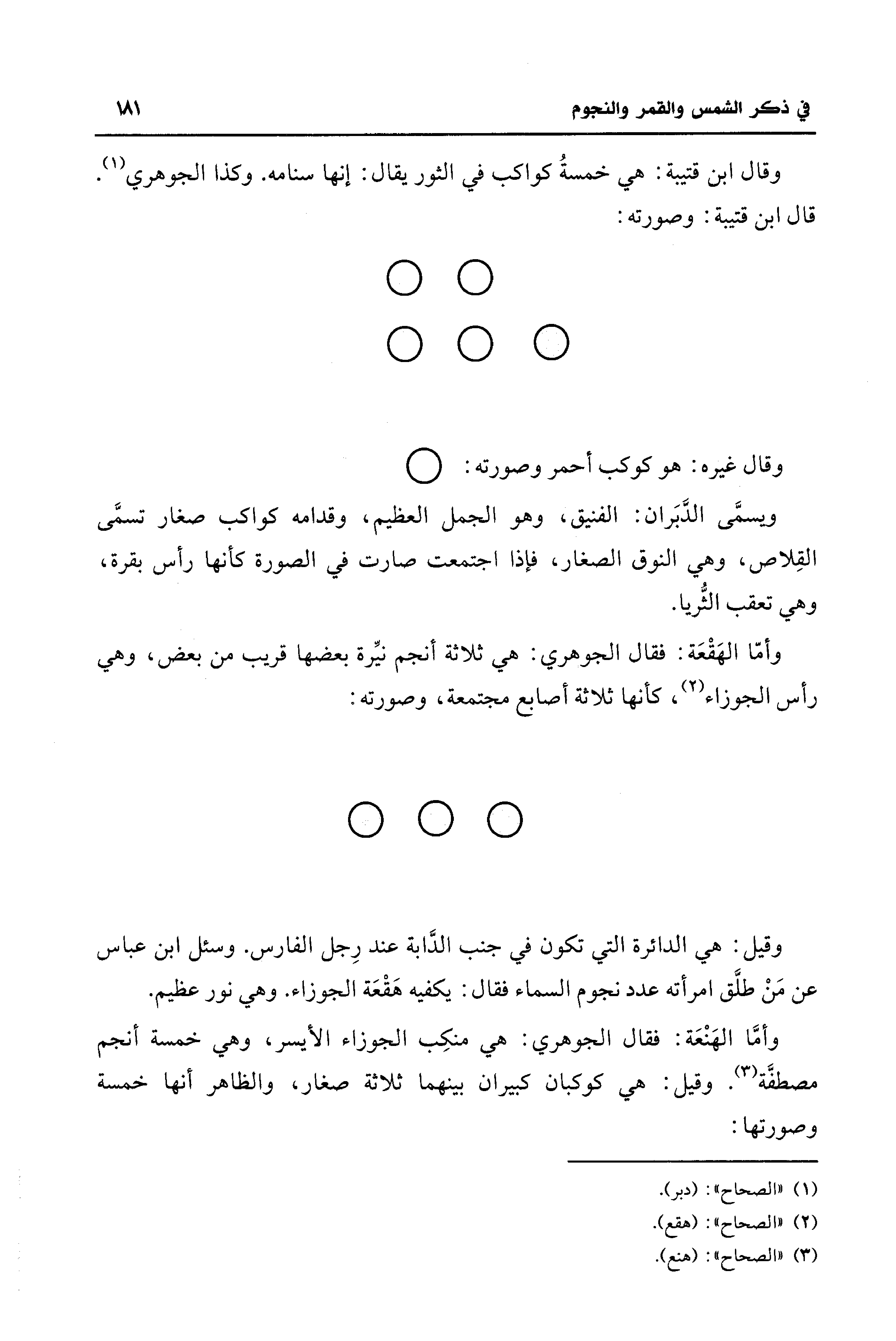 وأمّا الهَقْعَة: فقال الجوهري: هي ثلاثة أنجم نيِّرة بعضها قريب من بعض، وهي رأس الجوزاء (¬2)، كأنها ثلاثة أصابع مجتمعة، وصورته: