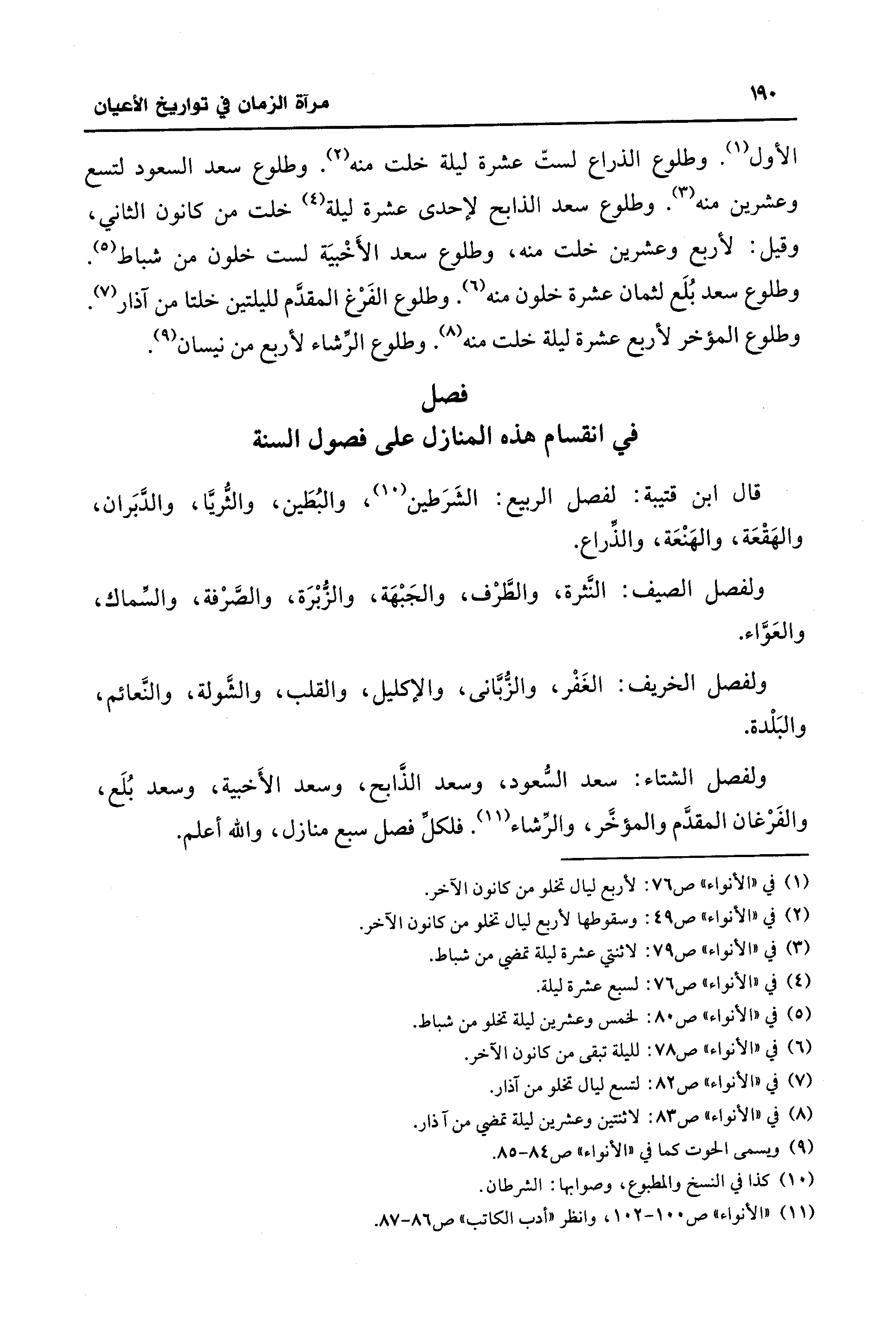 (¬11) "الأنواء" ص 100 - 102، وانظر "أدب الكاتب" ص 86 - 87.