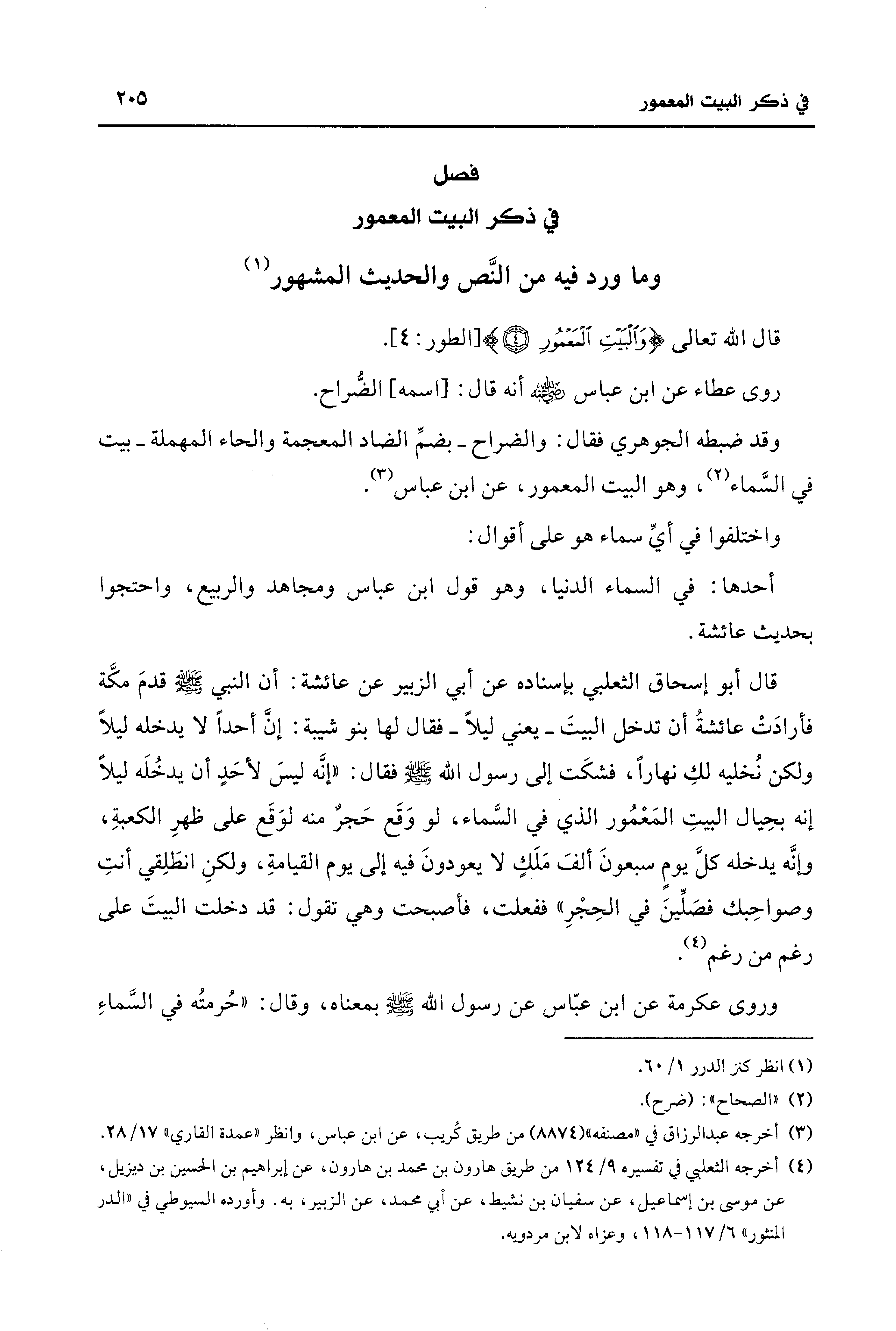 وقد ضبطه الجوهري فقال: والضراح -بضمِّ الضاد المعجمة والحاء المهملة- بيت في السَّماء (¬2)، وهو البيت المعمور، عن ابن عباس (¬3).