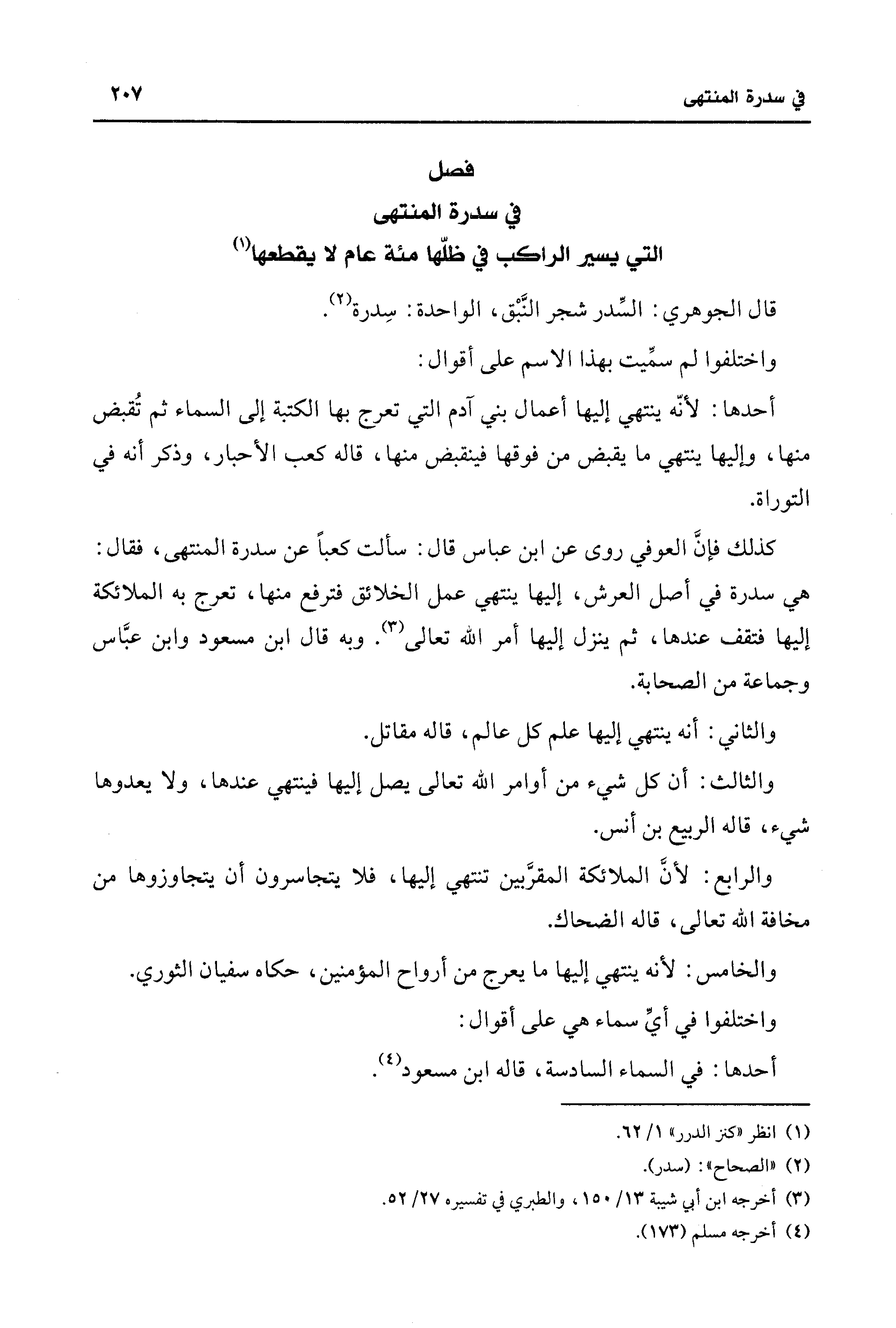 فصل في سدرة المنتهى التي يسير الراكب في ظلّها مئة عام لا يقطعها (¬1)