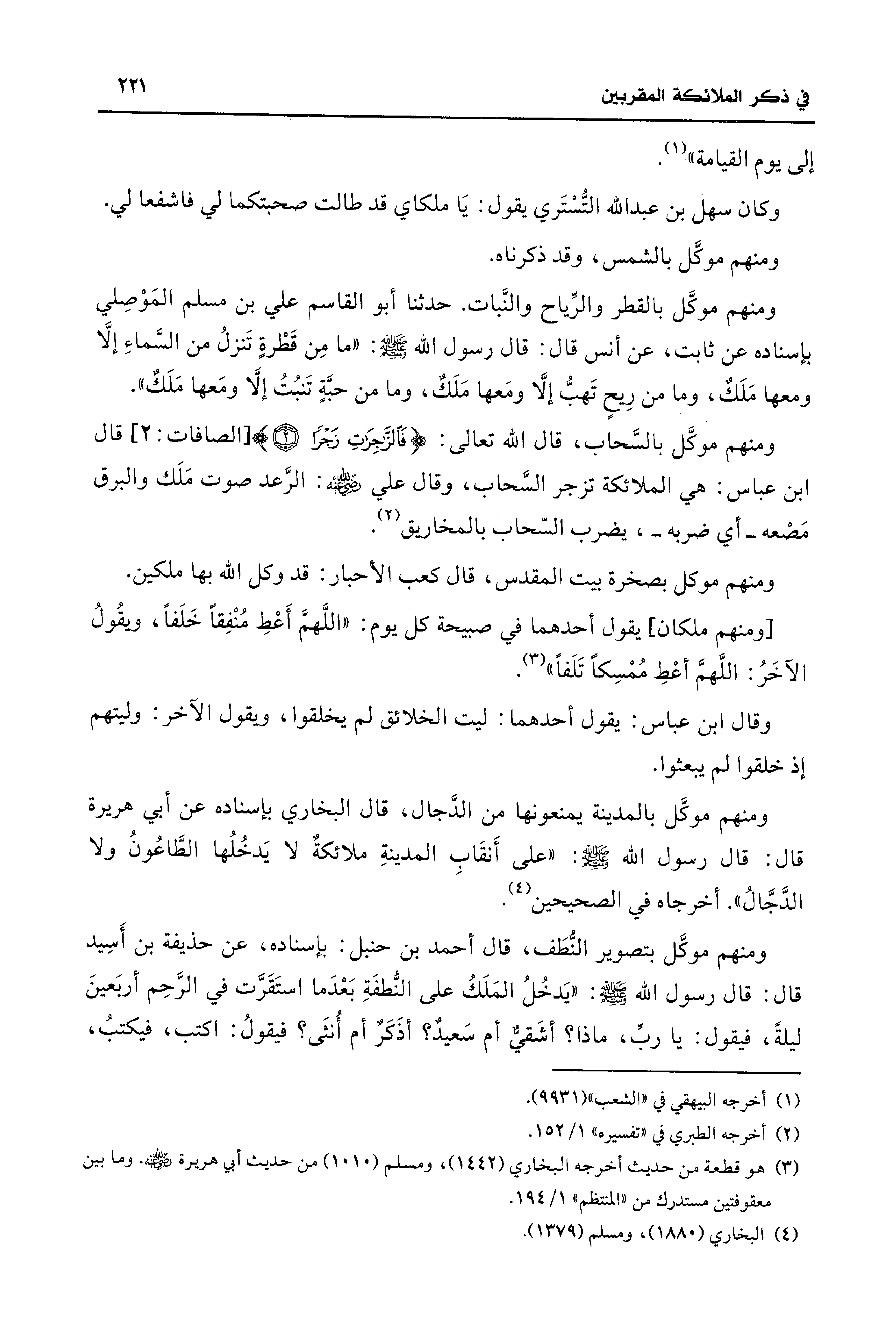 [ومنهم ملكان] يقول أحدهما في صبيحة كل يوم: "اللَّهَمَّ أَعْطِ مُنْفِقًا خَلَفًا، ويقُولُ الآخَرُ: اللَّهمَّ أعْطِ مُمْسِكًا تَلَفًا" (¬3).