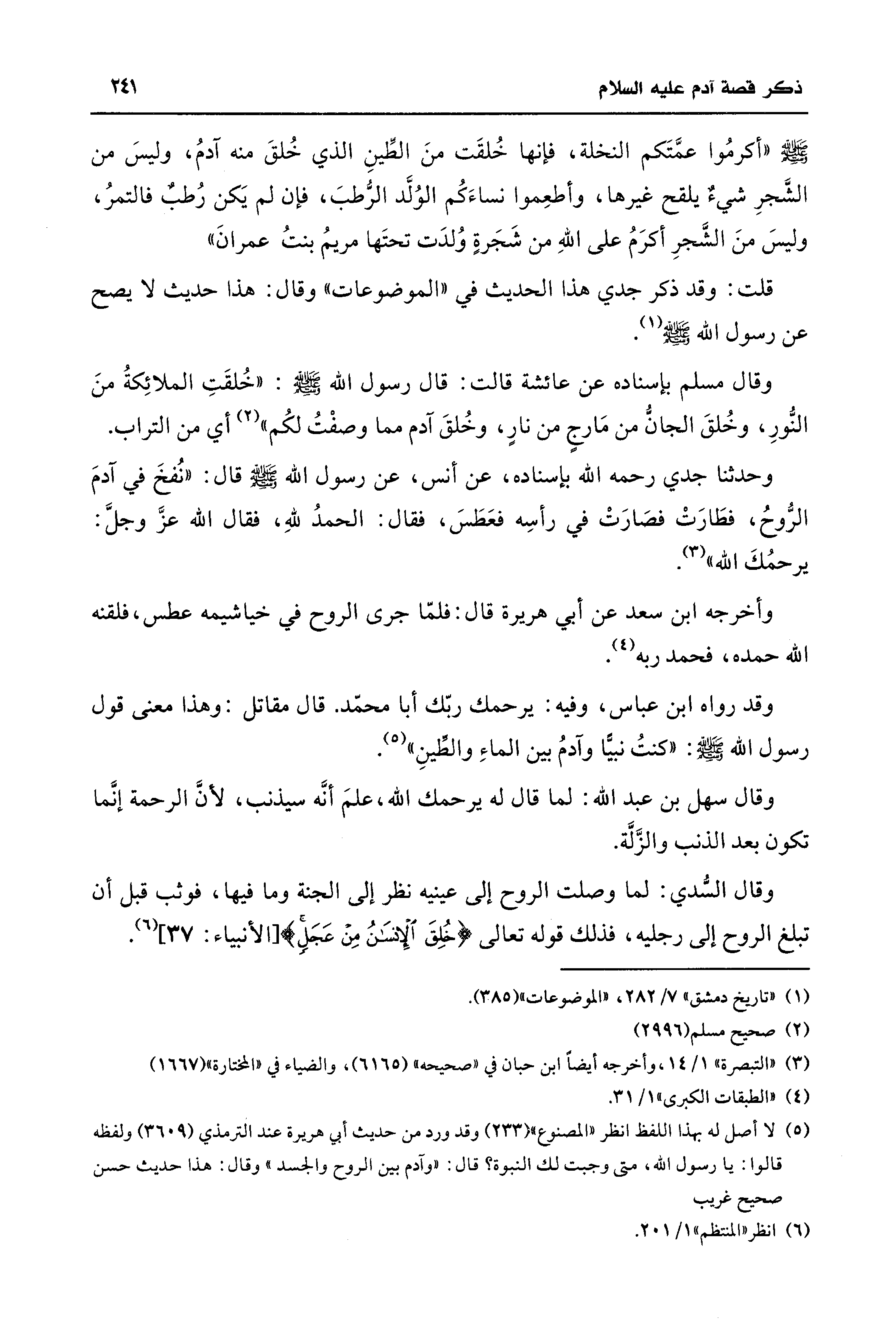 وقد رواه ابن عباس، وفيه: يرحمك ربّك أبا محمّد. قال مقاتل: وهذا معنى قول رسول الله - صلى الله عليه وسلم -: "كنتُ نبيًّا وآدمُ بين الماءِ والطِّينِ" (¬5).