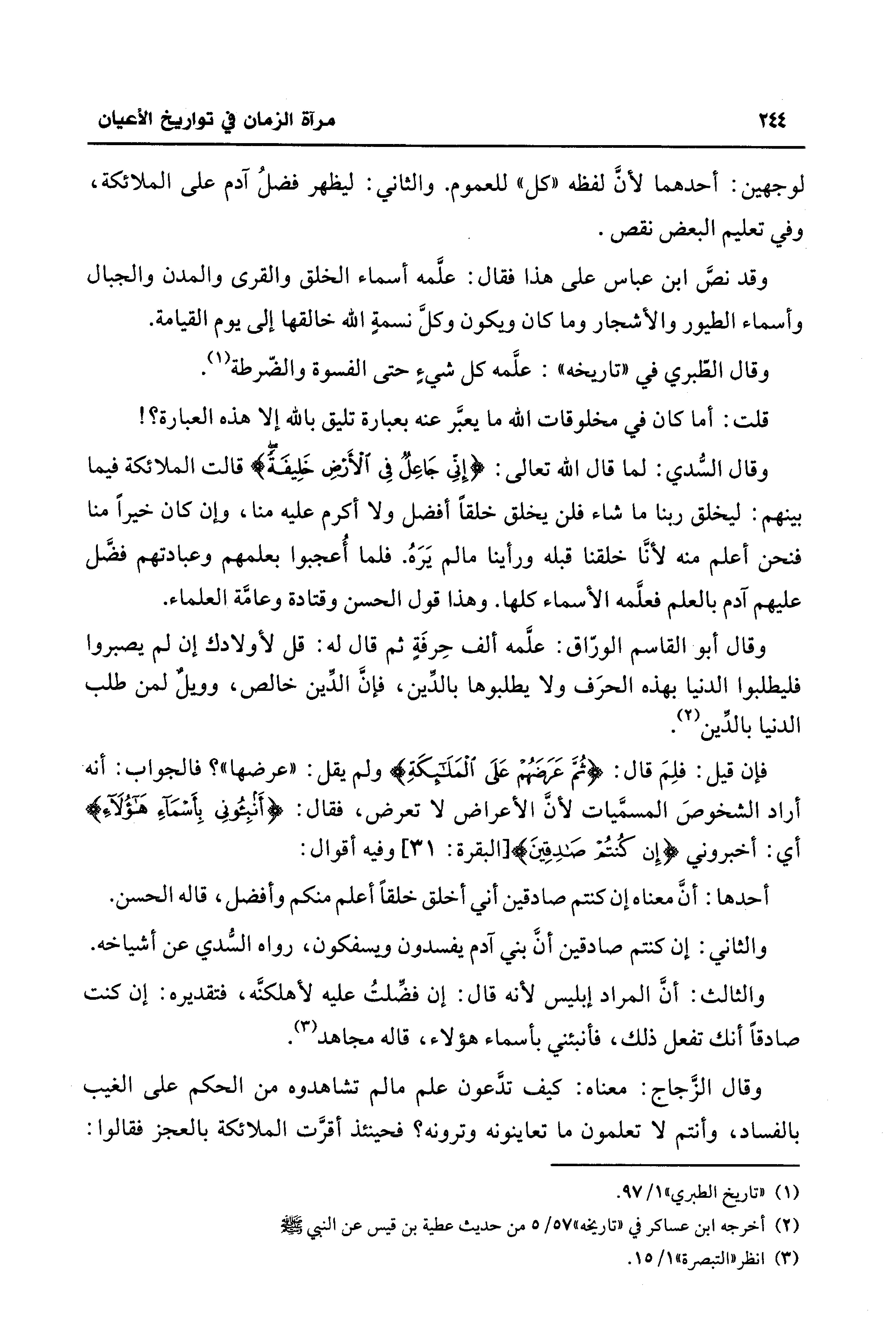 وقد نصَّ ابن عباس على هذا فقال: علَّمه أسماء الخلق والقرى والمدن والجبال وأسماء الطيور والأشجار وما كان ويكون وكلَّ نسميةٍ الله خالقها إلى يوم القيامة.