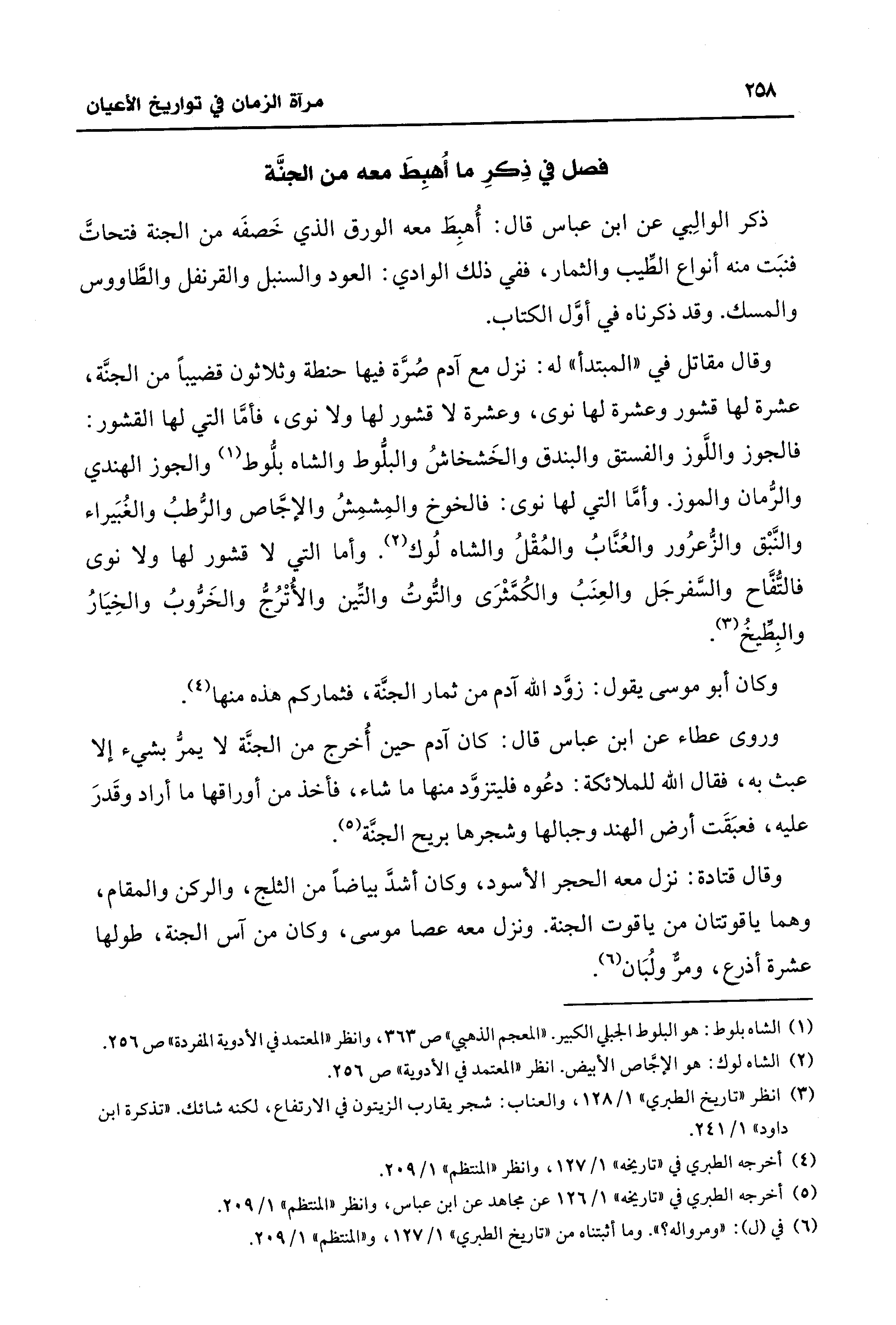 (¬3) انظر "تاريخ الطبري" 1/ 128، والعناب: شجر يقارب الزيتون في الارتفاع، لكنه شائك. "تذكرة ابن داود" 1/ 241.