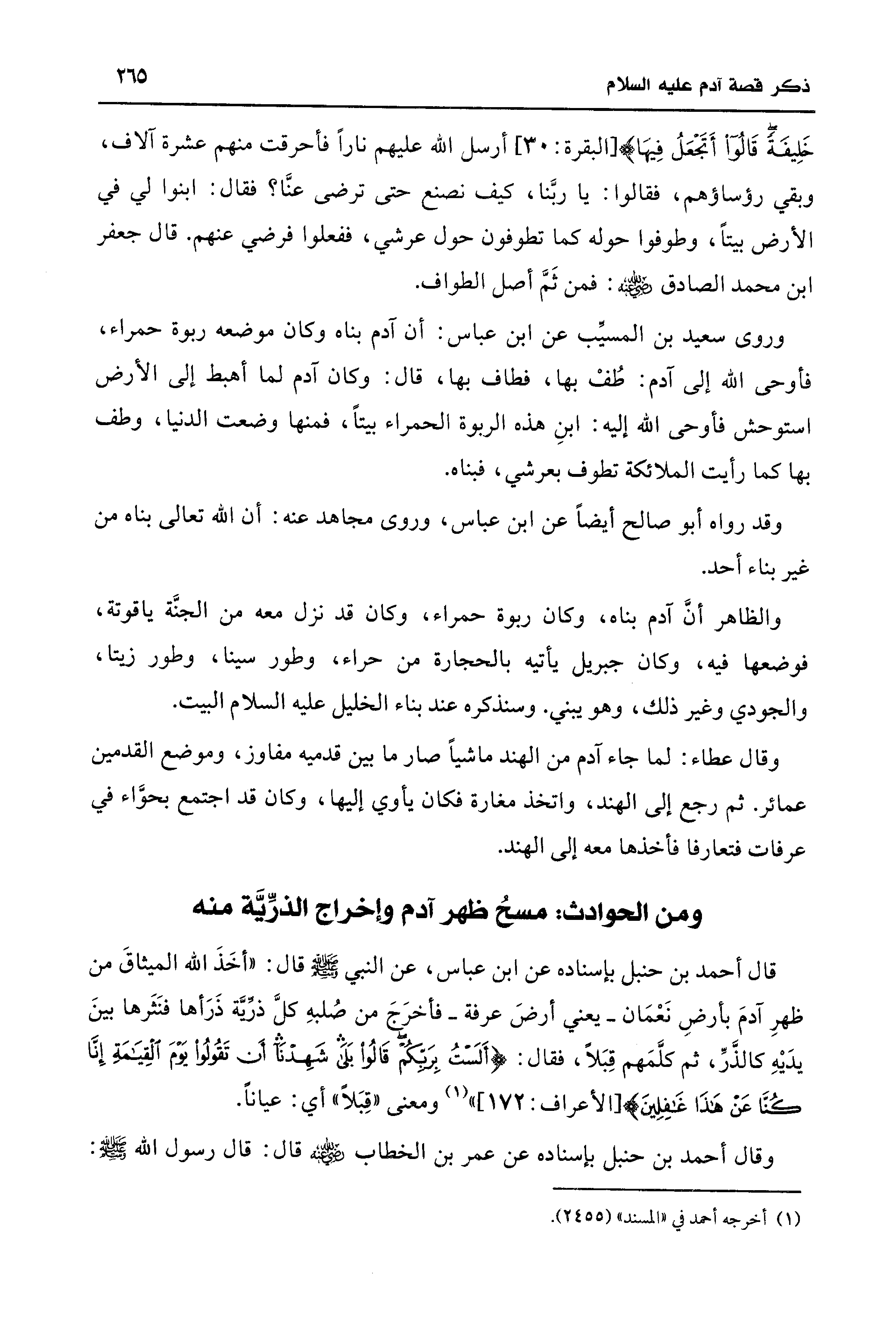 ومن الحوادث: مسحُ ظهر آدم وإخراج الذرِّيَّة منه