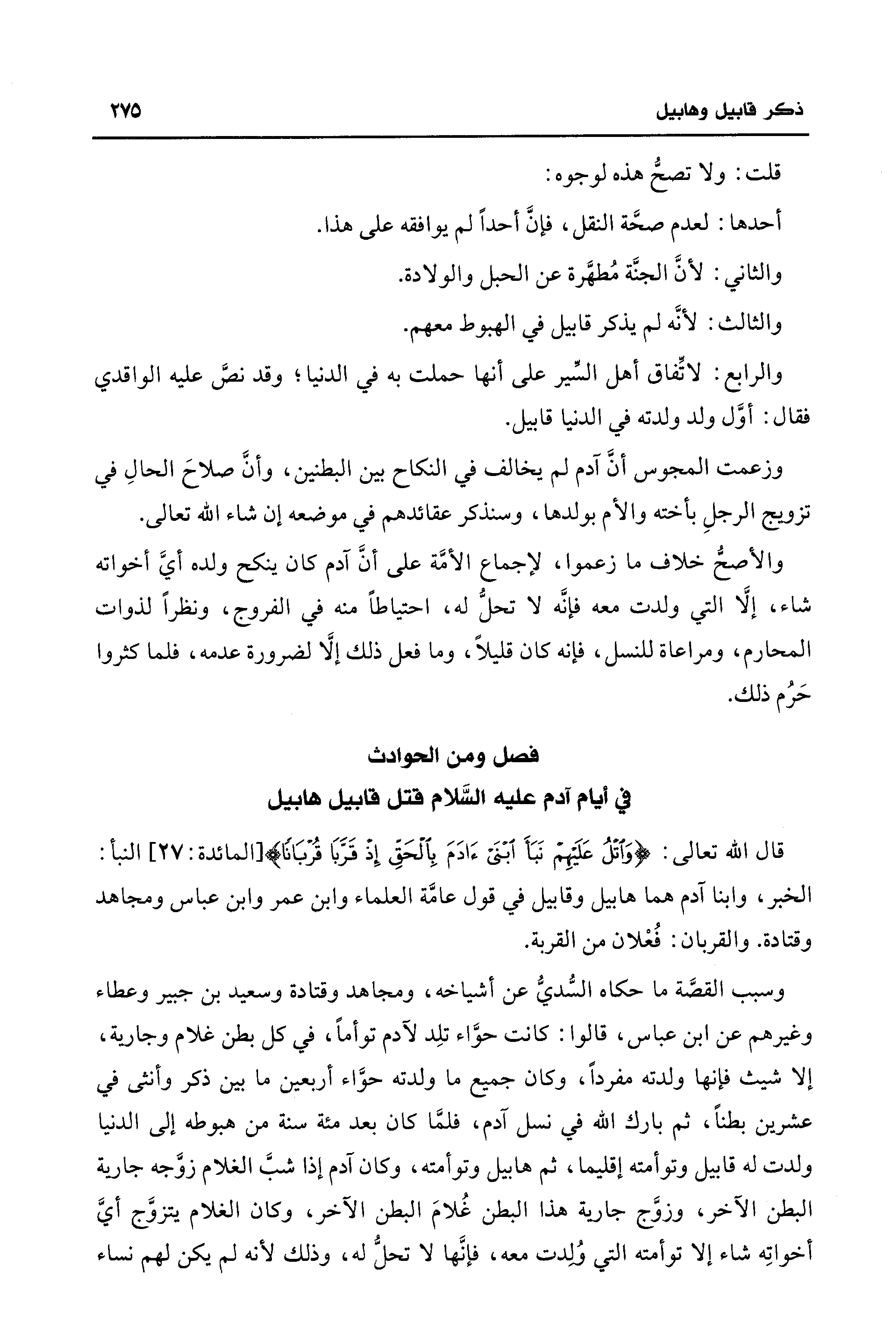 فصل ومن الحوادث في أيام آدم عليه السَّلام قتل قابيل هابيل