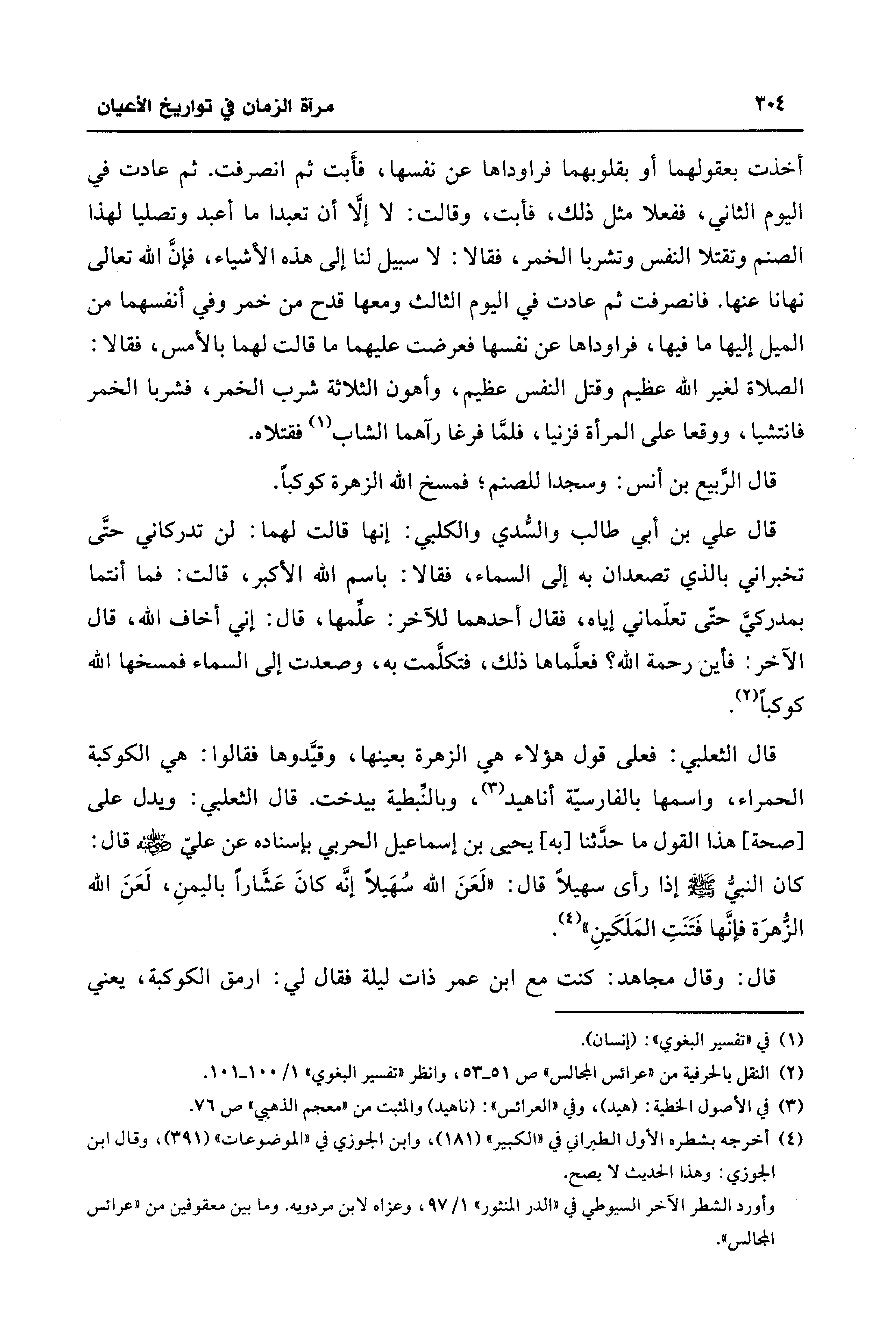 قال الثعلبي: فعلى قول هؤلاء هي الزهرة بعينها، وقيَّدوها فقالوا: هي الكوكبة الحمراء، واسمها بالفارسية أناهيد (¬3)، وبالنِّبطية بيدخت. قال الثعلبي: ويدل على [صحة] هذا القول ما حدَّثنا [به] يحيى بن إسماعيل الحربي بإسناده عن عليّ - رضي الله عنه - قال: كان النبيُّ - صلى الله عليه وسلم - إذا رأى سهيلًا قال: "لَعَنَ الله سُهَيلًا إنه كانَ عَشَّارًا باليمنِ، لَعَنَ الله الزُّهرَة فإنَّها فَتَنَتِ المَلَكَينِ" (¬4).