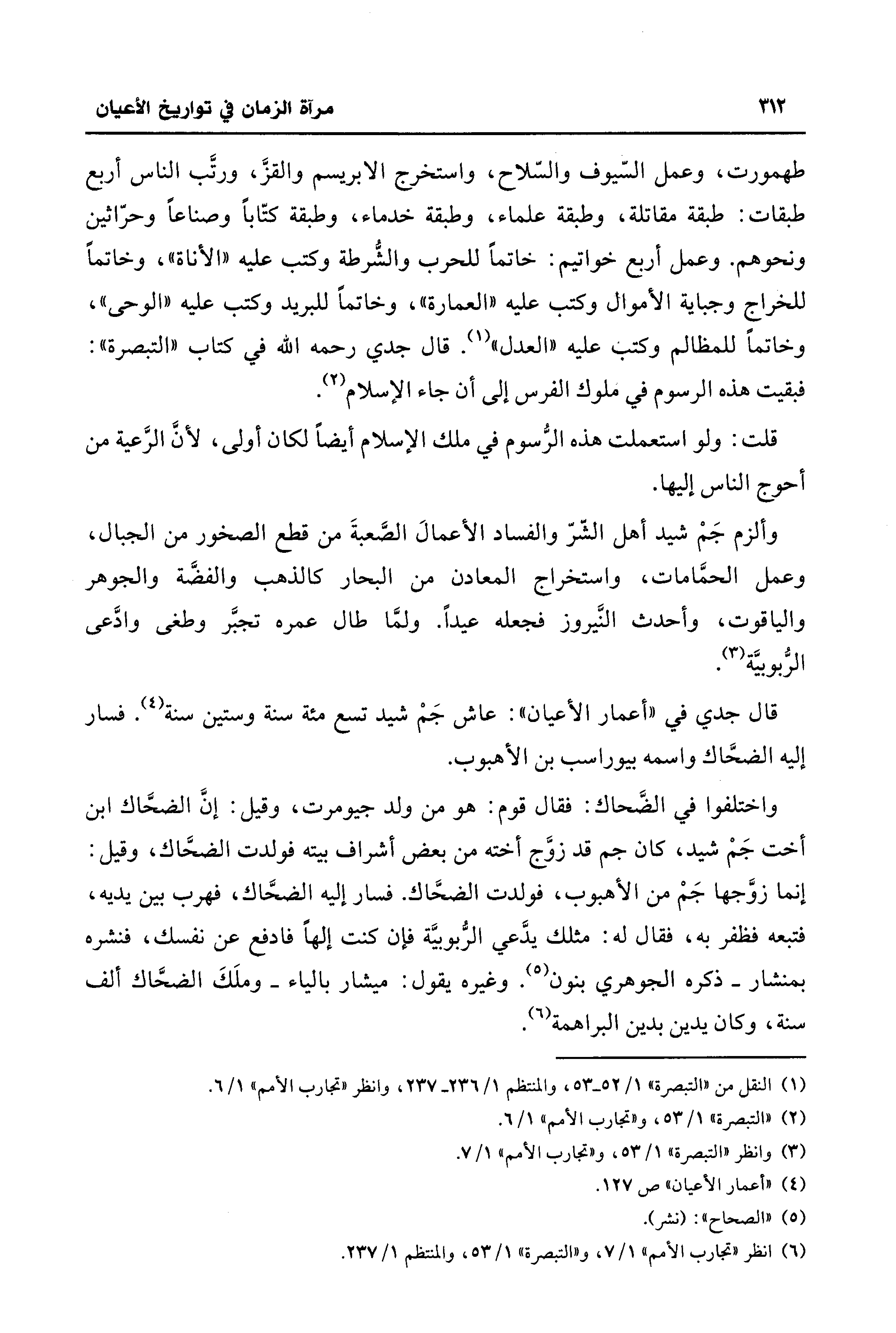 (¬6) انظر "تجارب الأمم" 1/ 7، و"التبصرة" 1/ 53، والمنتظم 1/ 237.