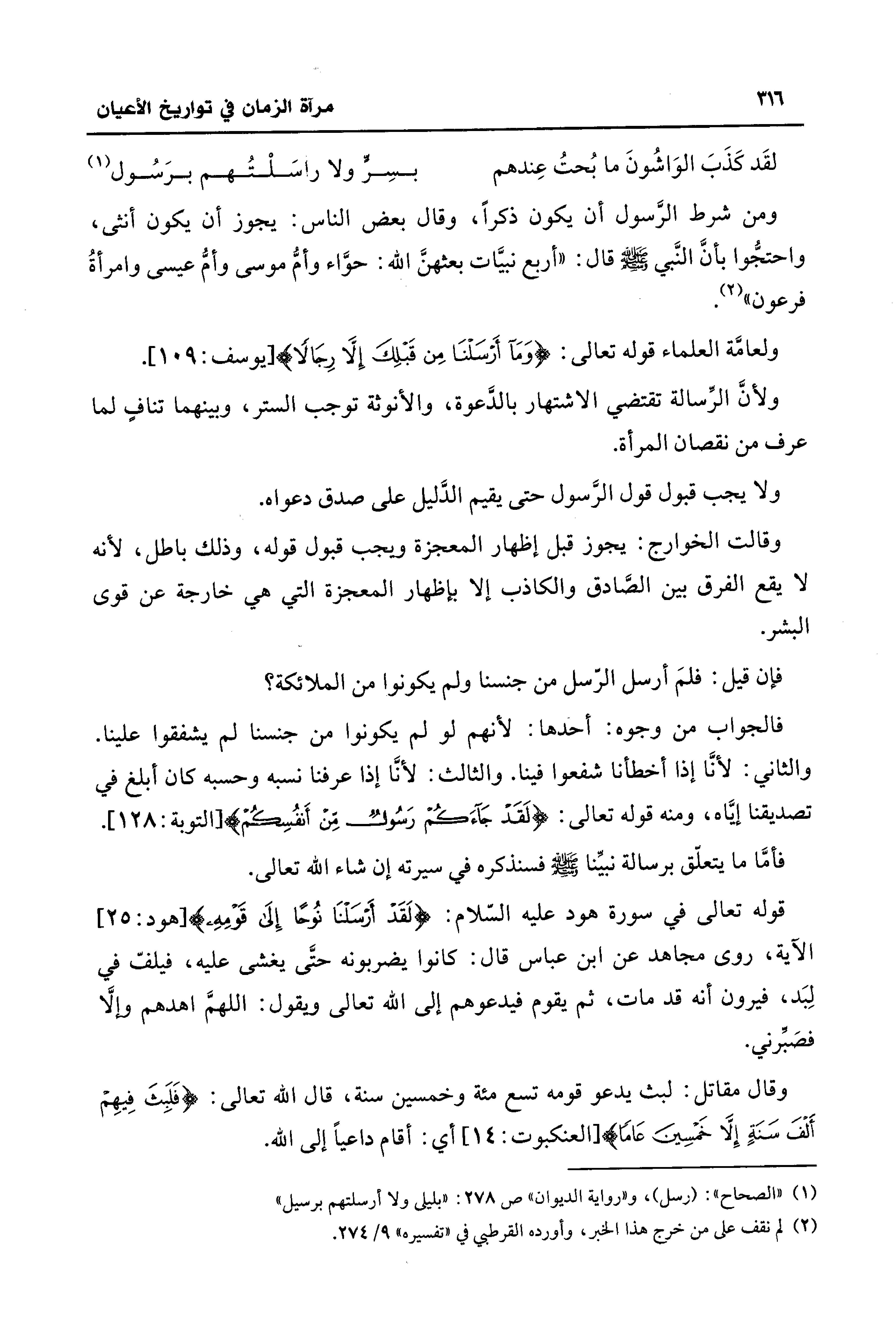 ومن شرط الرَّسول أن يكون ذكرًا، وقال بعض الناس: يجوز أن يكون أنثى، واحتجُّوا بأنَّ النَّبي - صلى الله عليه وسلم - قال: "أربع نبيَّات بعثهنَّ الله: حوَّاء وأمُّ موسى وأمُّ عيسى وامرأةُ فرعون" (¬2).