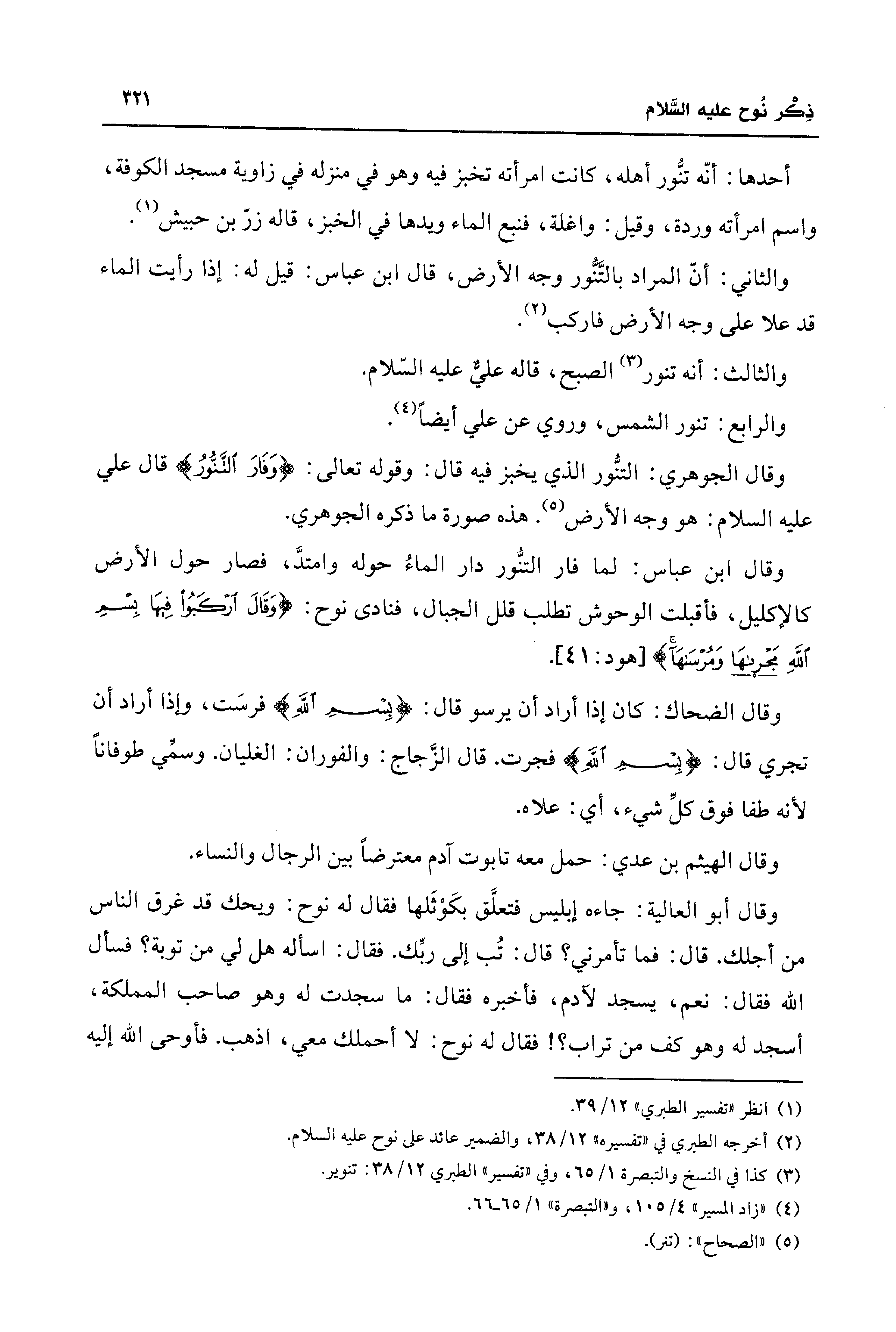 وقال الجوهري: التنُّور الذي يخبز فيه قال: وقوله تعالى: {وَفَارَ التَّنُّوُر} قال علي - عليه السلام -: هو وجه الأرض (¬5). هذه صورة ما ذكره الجوهري.