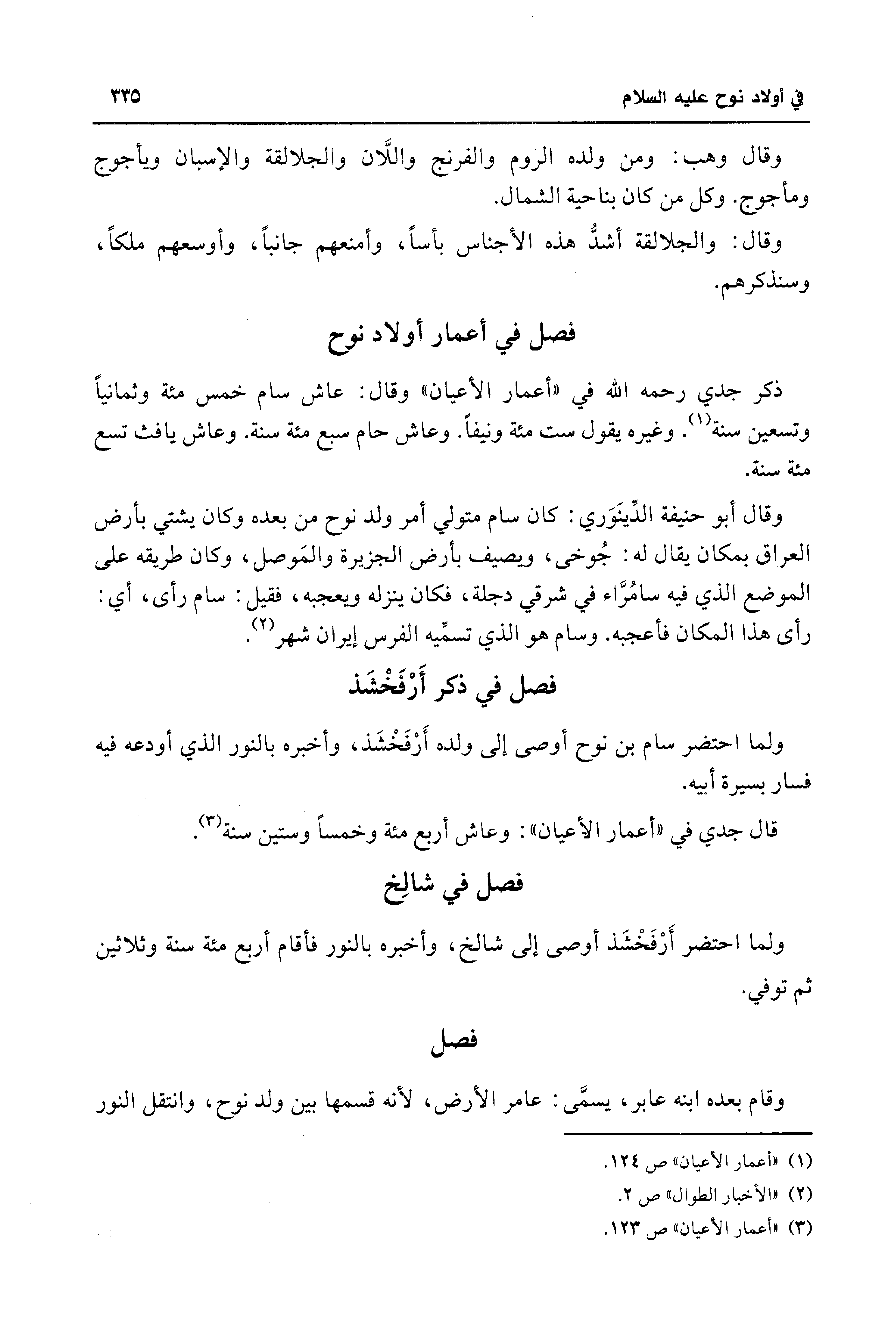 فصل في أعمار أولاد نوح
