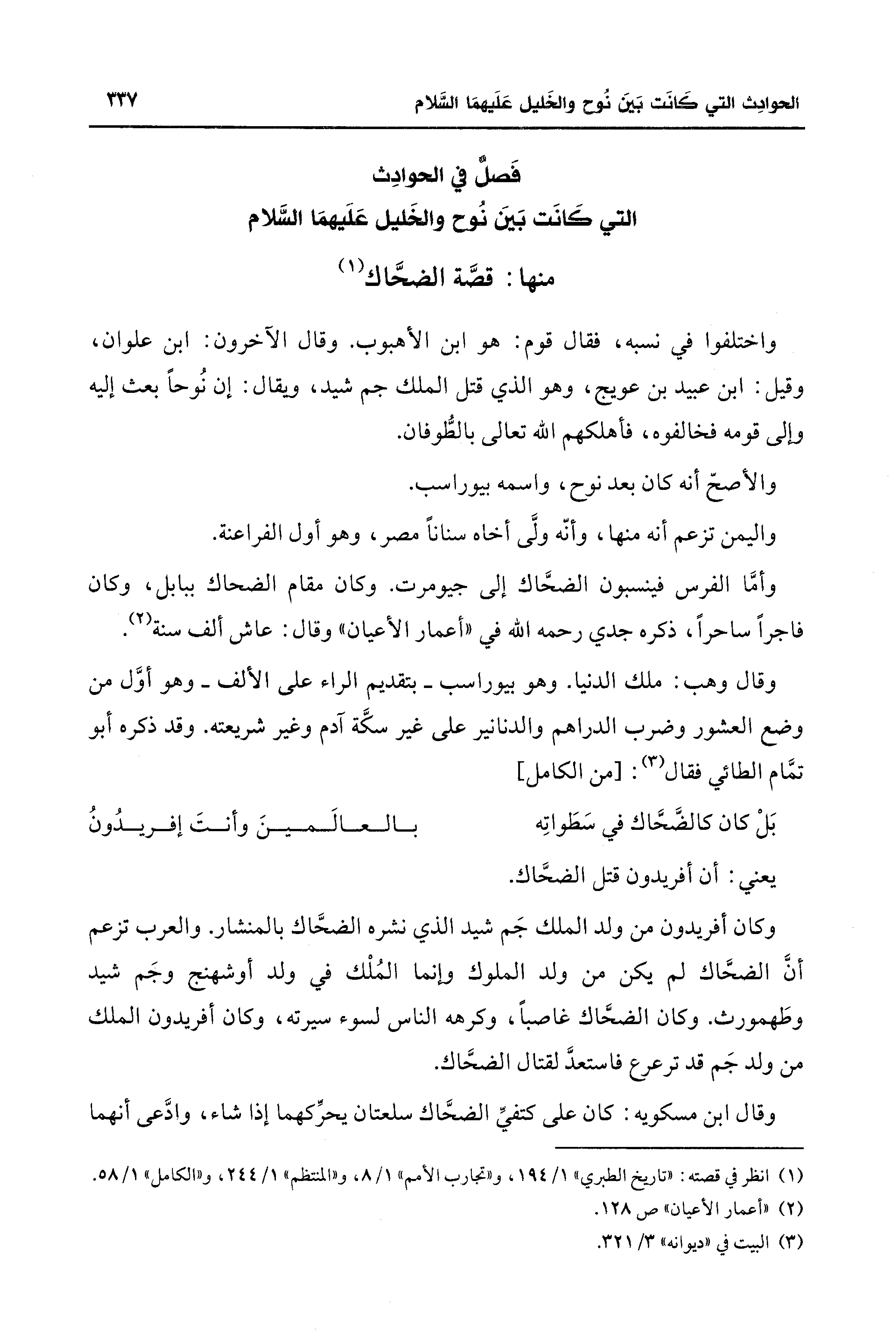 (¬1) انظر في قصته: "تاريخ الطبري" 1/ 194، و"تجارب الأمم" 1/ 8، و"المنتظم" 1/ 244، و"الكامل" 1/ 58.