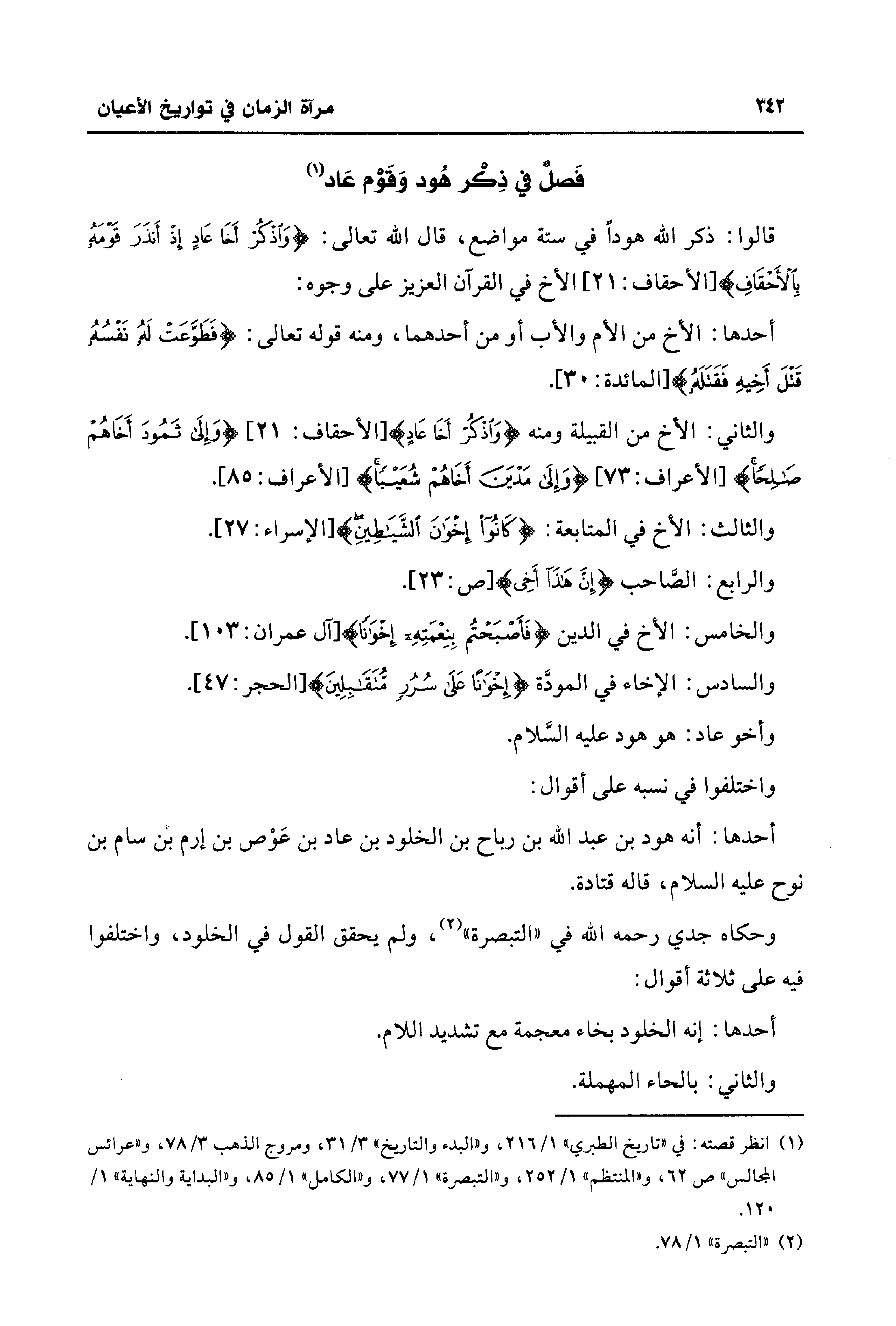 قالوا: ذكر الله هودًا في ستة مواضع، قال الله تعالى: {وَاذْكُرْ أَخَا عَادٍ إِذْ أَنْذَرَ قَوْمَهُ بِالْأَحْقَافِ} [الأحقاف: 21] الأخ في القرآن العزيز على وجوه: