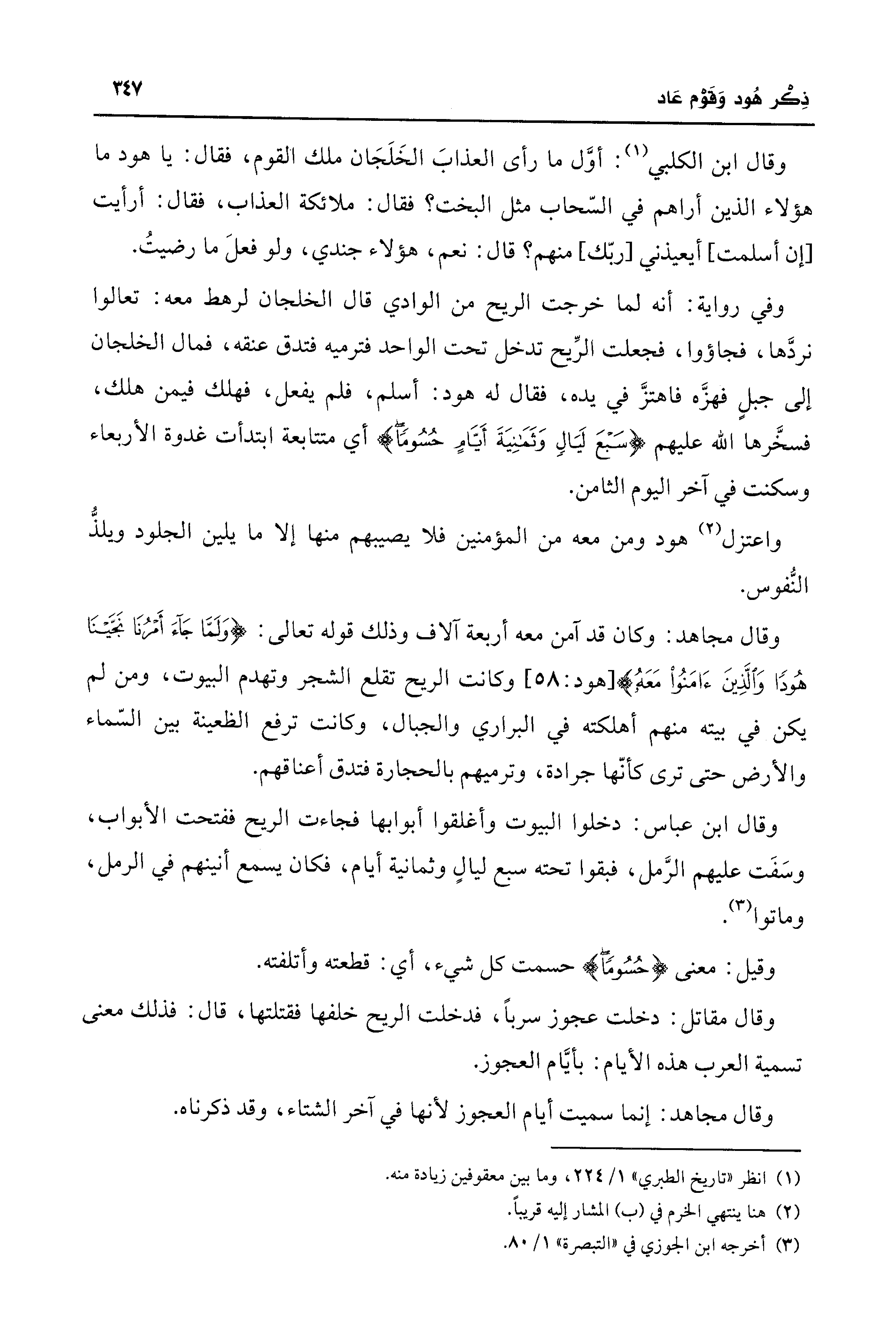 وفي رواية: أنه لما خرجت الريح من الوادي قال الخلجان لرهط معه: تعالوا نردها، فجاؤوا، فجعلت الريح تدخل تحت الواحد فترميه فتدق عنقه، فمال الخلجان إلى جبلٍ فهزَّه فاهتز في يده، فقال له هود: أسلم، فلم يفعل، فهلك فيمن هلك، فسخَّرها الله عليهم {سَبْعَ لَيَالٍ وَثَمَانِيَةَ أَيَّامٍ حُسُومًا} أي متتابعة ابتدأت غدوة الأربعاء وسكنت في آخر اليوم الثامن.