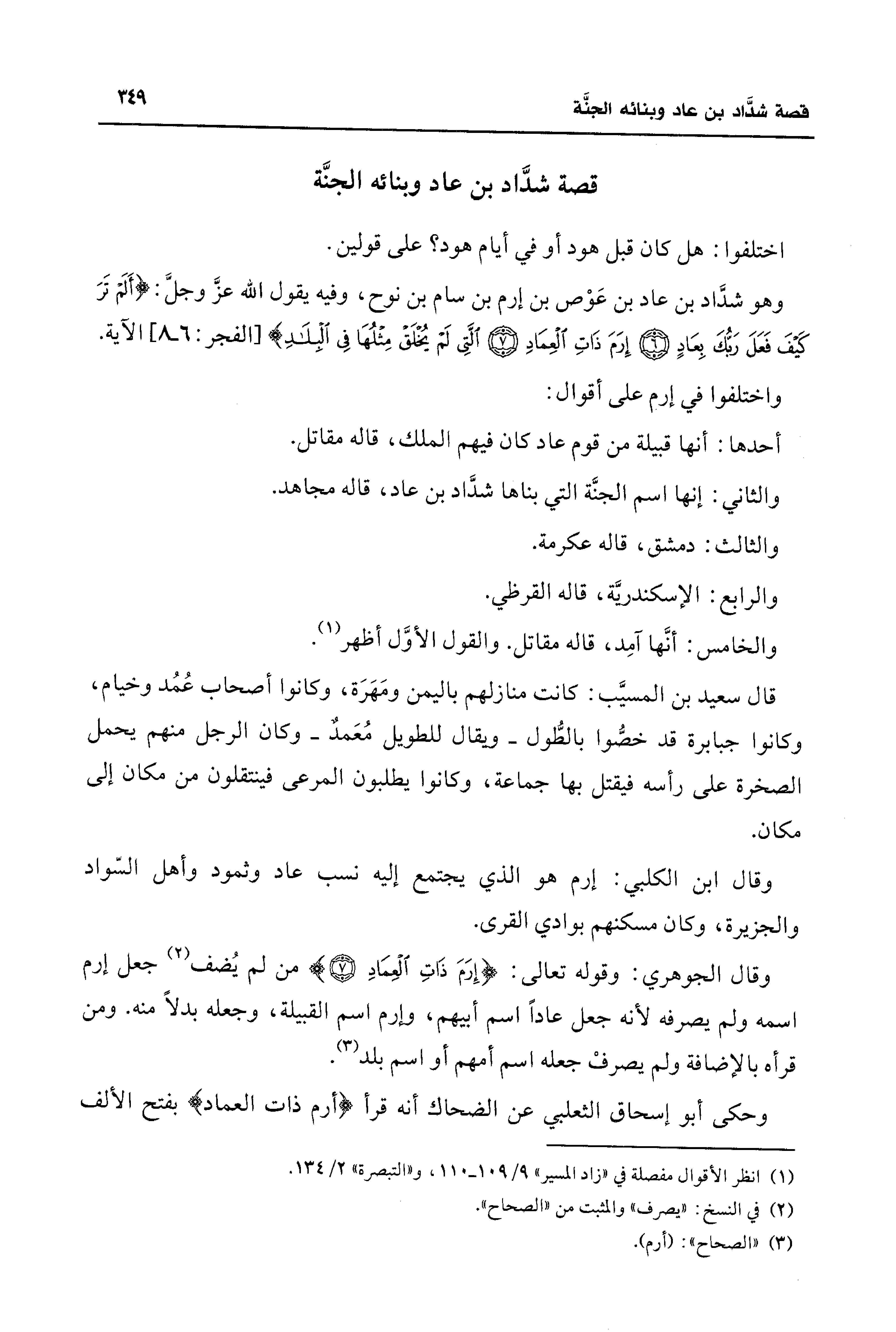 وقال الجوهري: وقوله تعالى: {إِرَمَ ذَاتِ الْعِمَادِ (7)} من لم يُضف (¬2) جعل إرم اسمه ولم يصرفه لأنه جعل عادًا اسم أبيهم، وإرم اسم القبيلة، وجعله بدلًا منه. ومن قرأه بالإضافة ولم يصرف جعله اسم أمهم أو اسم بلد (¬3).