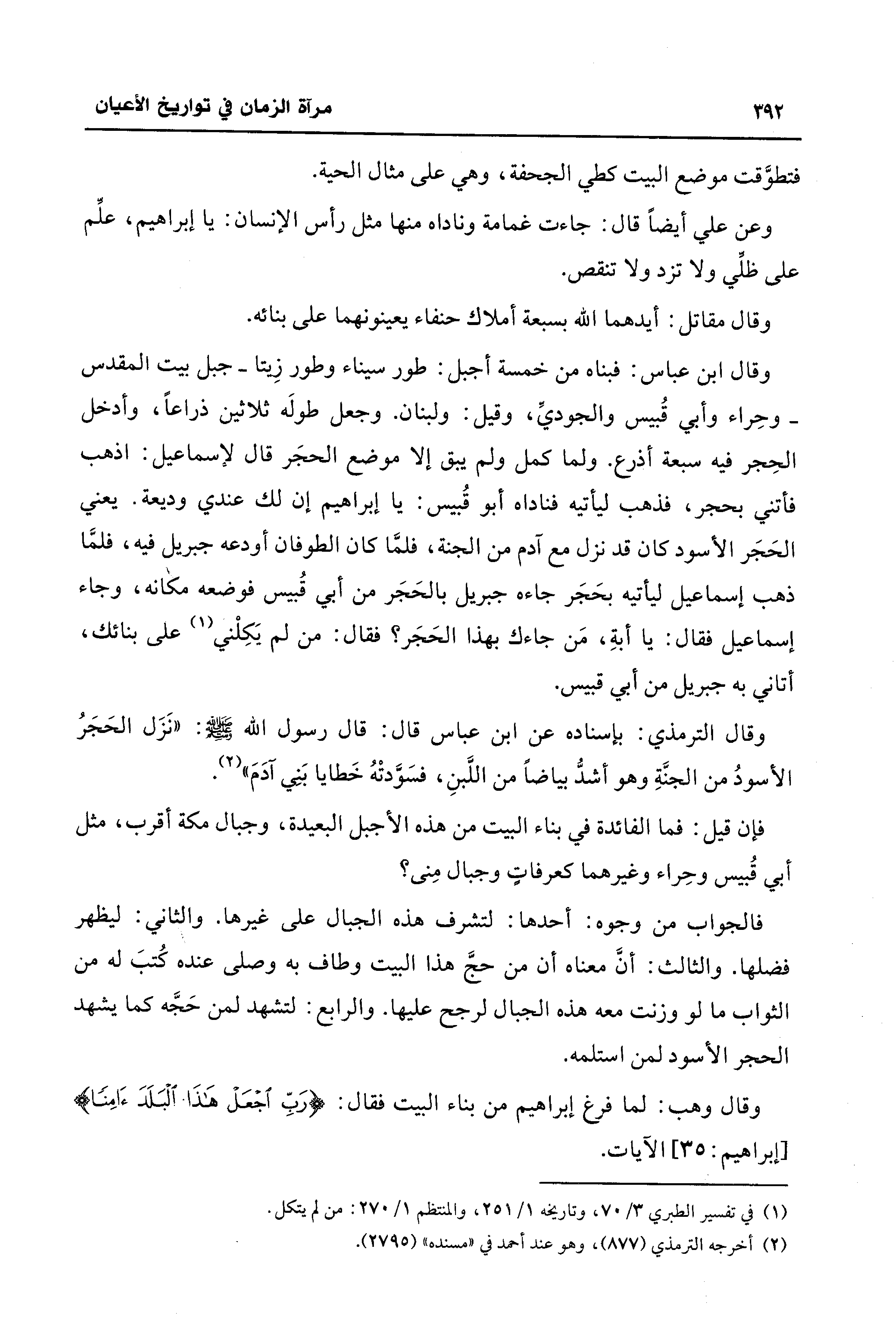 وقال الترمذي: بإسناده عن ابن عباس قال: قال رسول الله - صلى الله عليه وسلم -: "نَزَل الحَجَرُ الأسودُ من الجنَّةِ وهو أشدُّ بياضًا من اللَّبنِ، فسَوَّدتْهُ خَطايا بَني آدَمَ" (¬2).