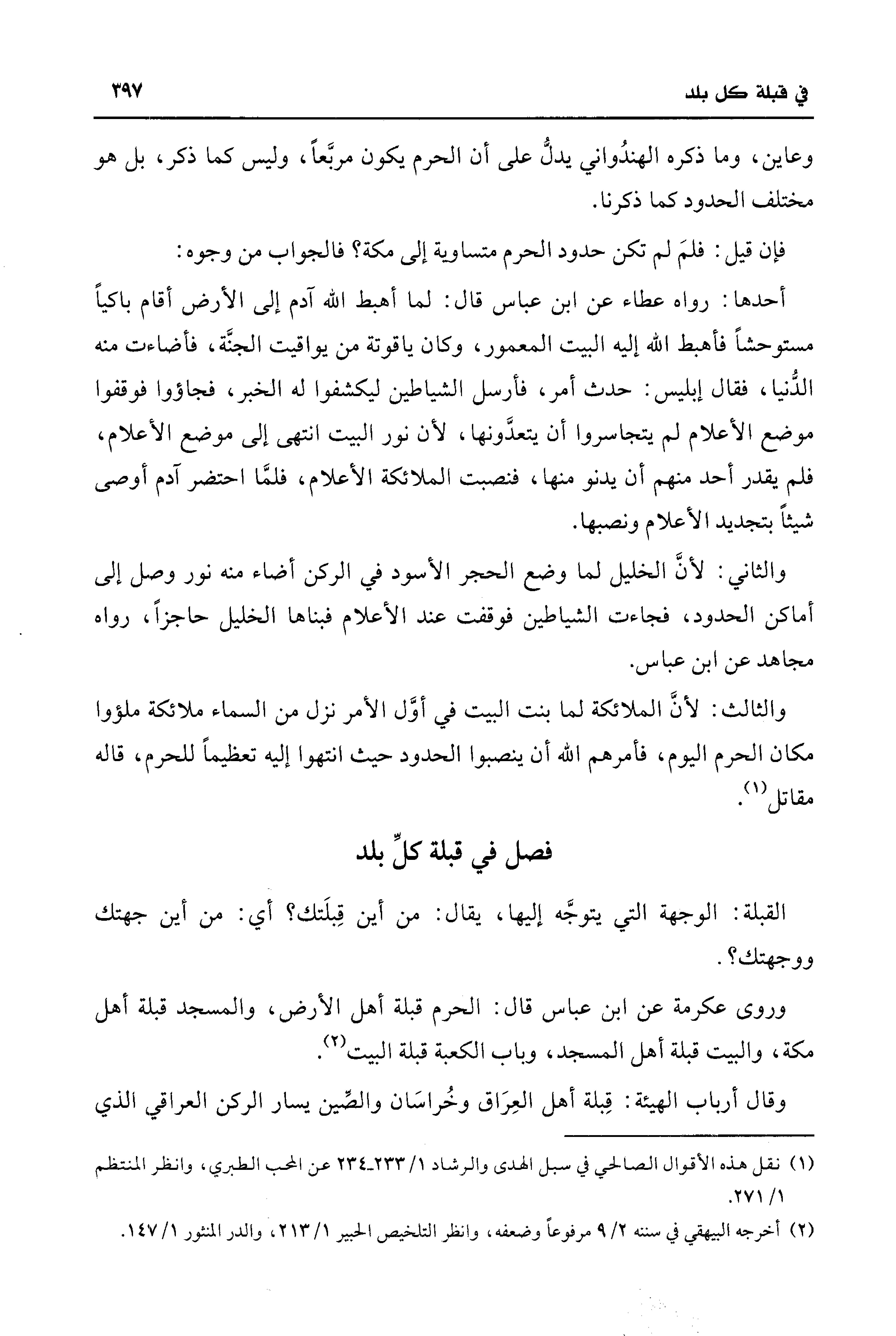 وعاين، وما ذكره الهندُواني يدلُّ على أن الحرم يكون مربَّعًا، وليس كما ذكر، بل هو مختلف الحدود كما ذكرنا.