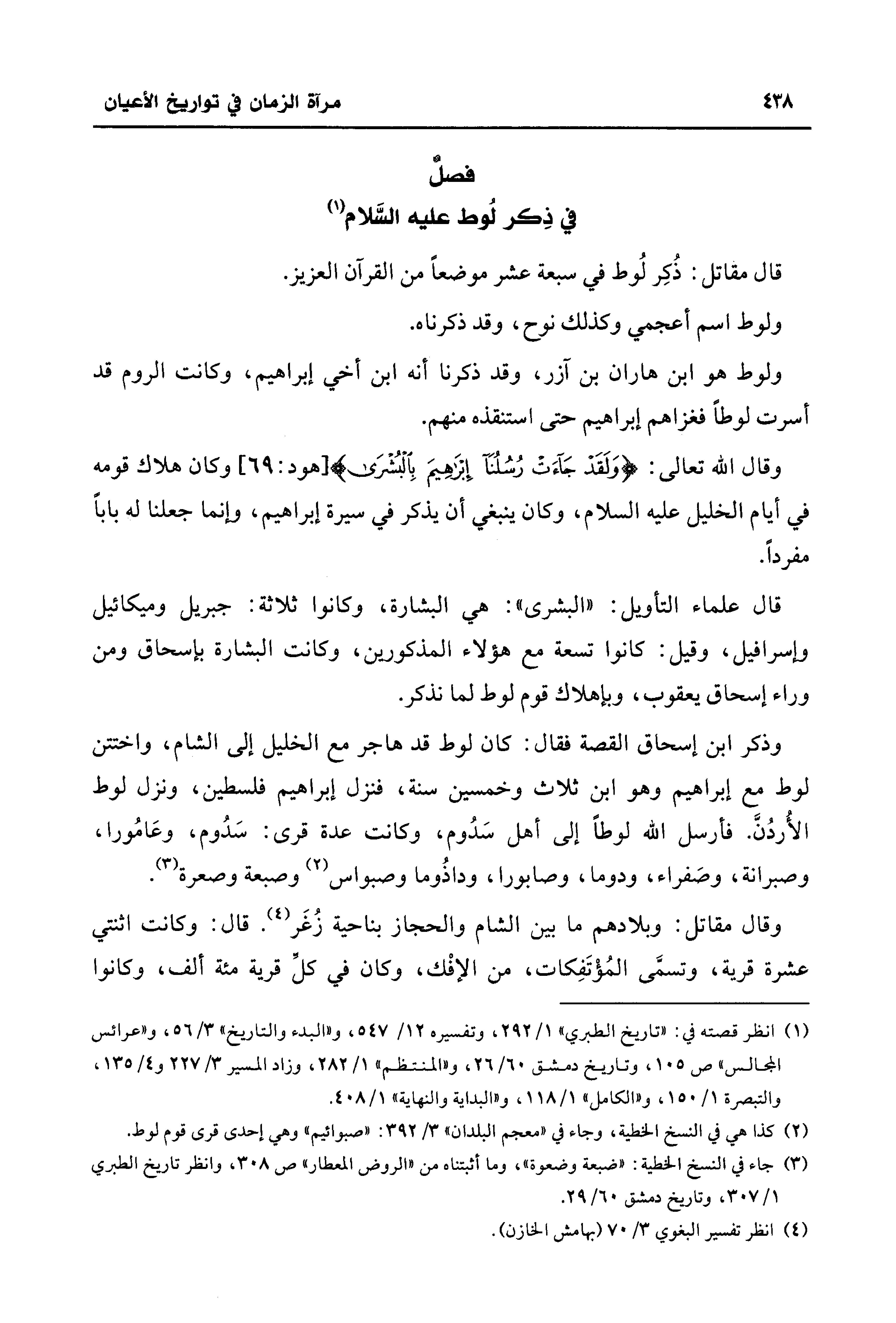 وقال الله تعالى: {وَلَقَدْ جَاءَتْ رُسُلُنَا إِبْرَاهِيمَ بِالْبُشْرَى} [هود: 69] وكان هلاك قومه في أيام الخليل - عليه السلام -، وكان ينبغي أن يذكر في سيرة إبراهيم، وإنما جعلنا له بابًا مفردًا.