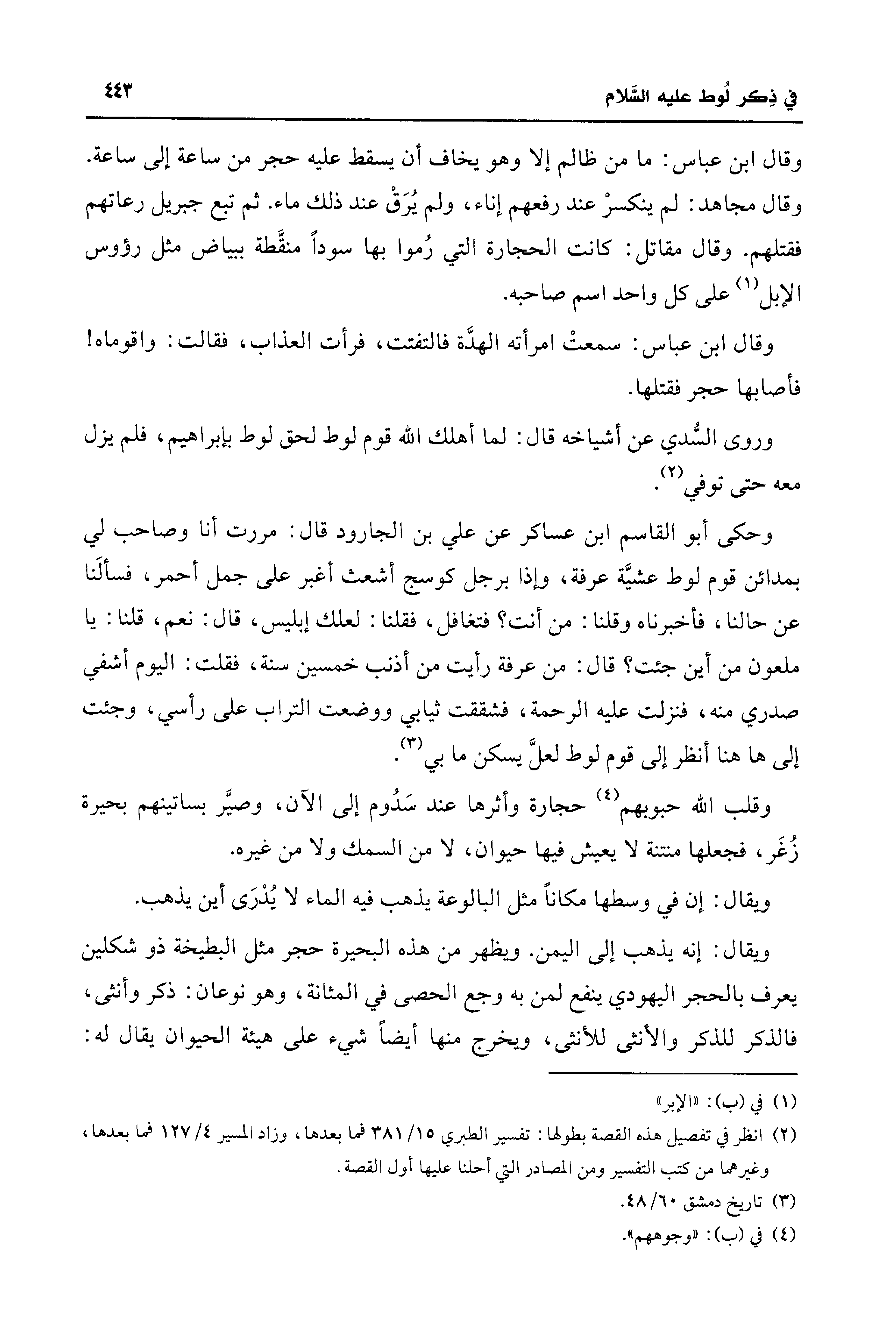 وقلب الله حبوبهم (¬4) حجارة وأثرها عند سَدُوم إلى الآن، وصيَّر بساتينهم بحيرة زُغَر، فجعلها منتنة لا يعيش فيها حيوان، لا من السمك ولا من غيره.