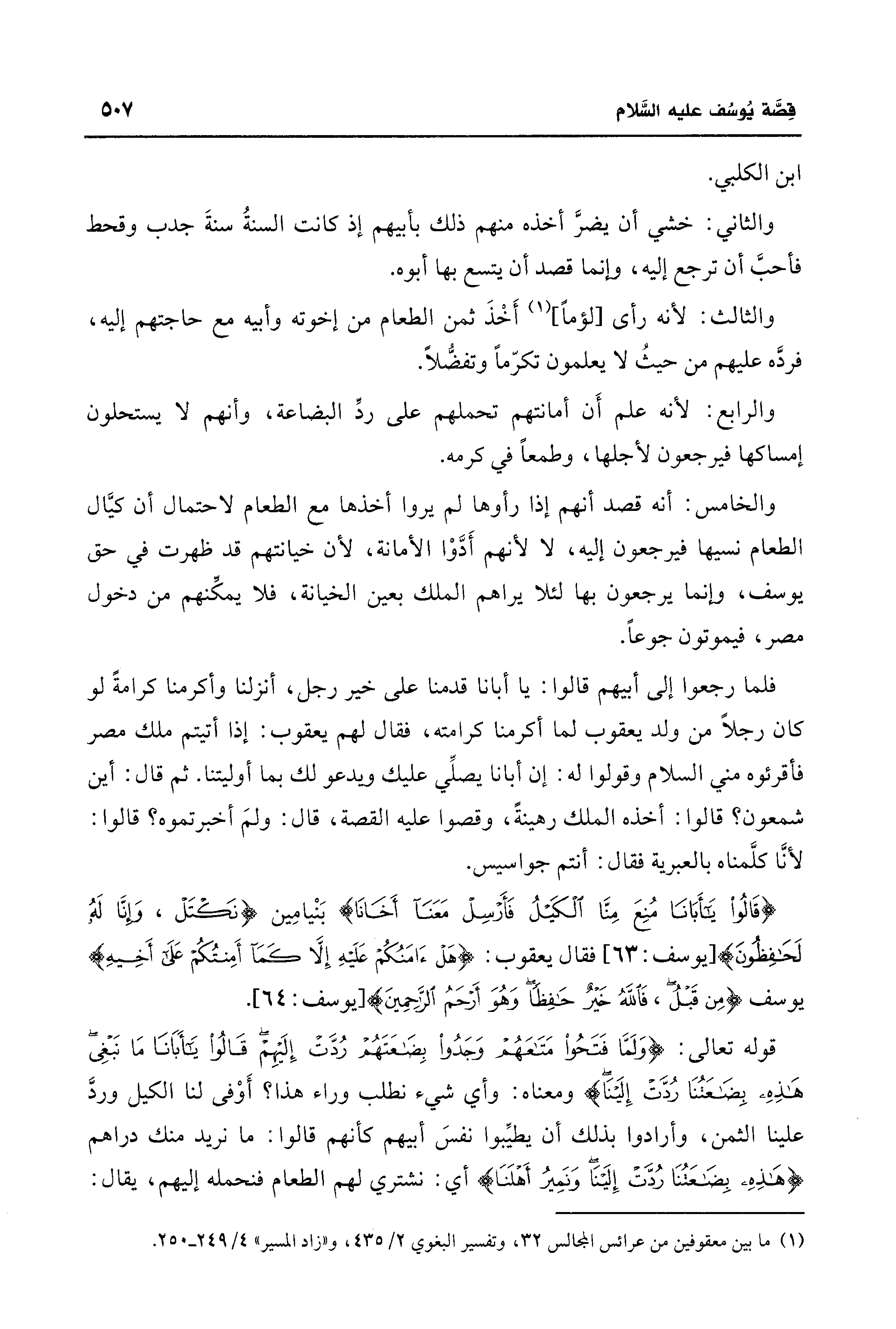 والثاني: خشي أن يضرَّ أخذه منهم ذلك بأبيهم إذ كانت السنةُ سنةَ جدب وقحط فأحبَّ أن ترجع إليه، وإنما قصد أن يتسع بها أبوه.