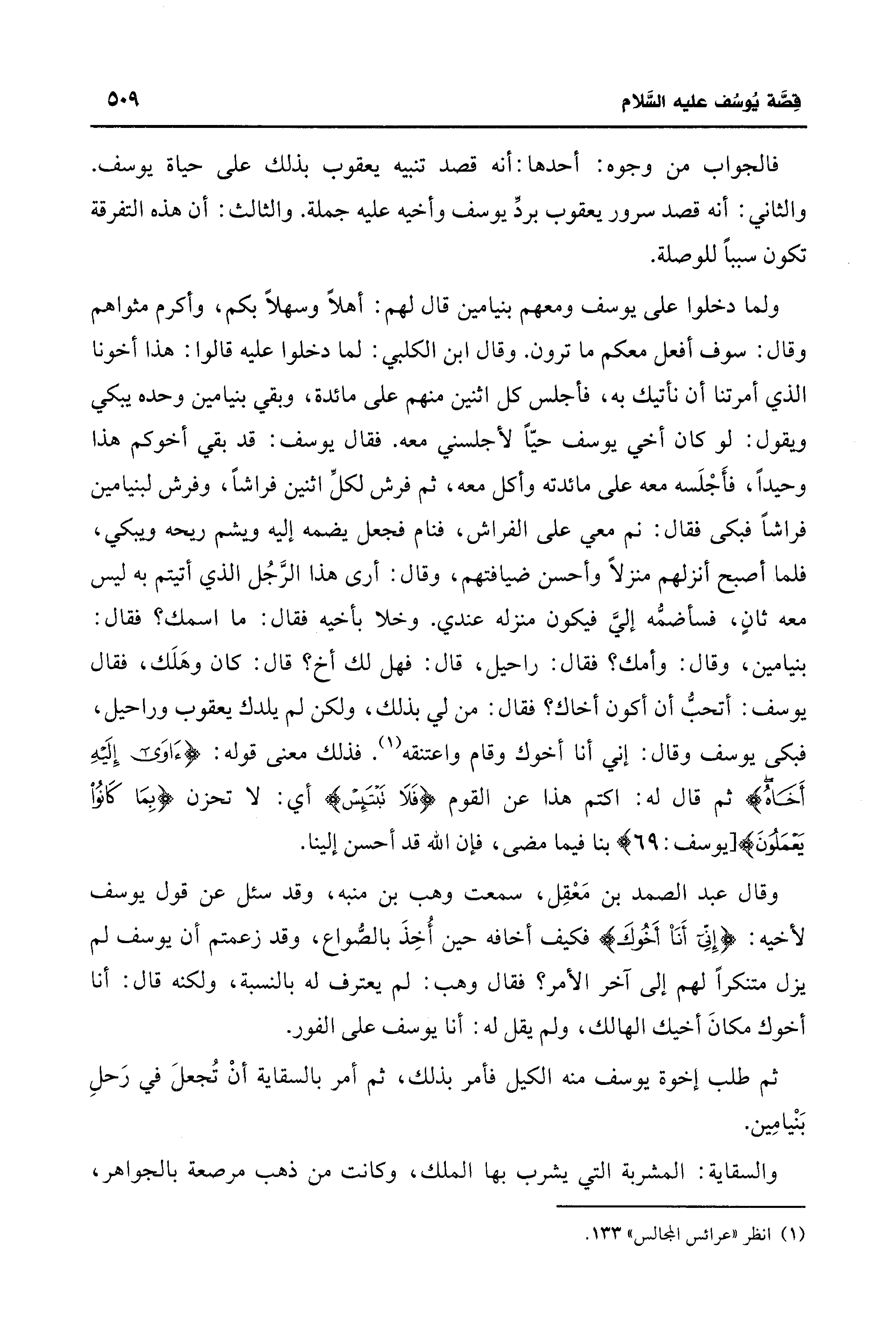 وقال عبد الصمد بن مَعْقِل، سمعت وهب بن منبه، وقد سئل عن قول يوسف لأخيه: {إِنِّي أَنَا أَخُوْكَ} فكيف أخافه حين أُخِذَ بالصُّواع، وقد زعمتم أن يوسف لم يزل متنكرًا لهم إلى آخر الأمر؟ فقال وهب: لم يعترف له بالنسبة، ولكنه قال: أنا أخوك مكانَ أخيك الهالك، ولم يقل له: أنا يوسف على الفور.