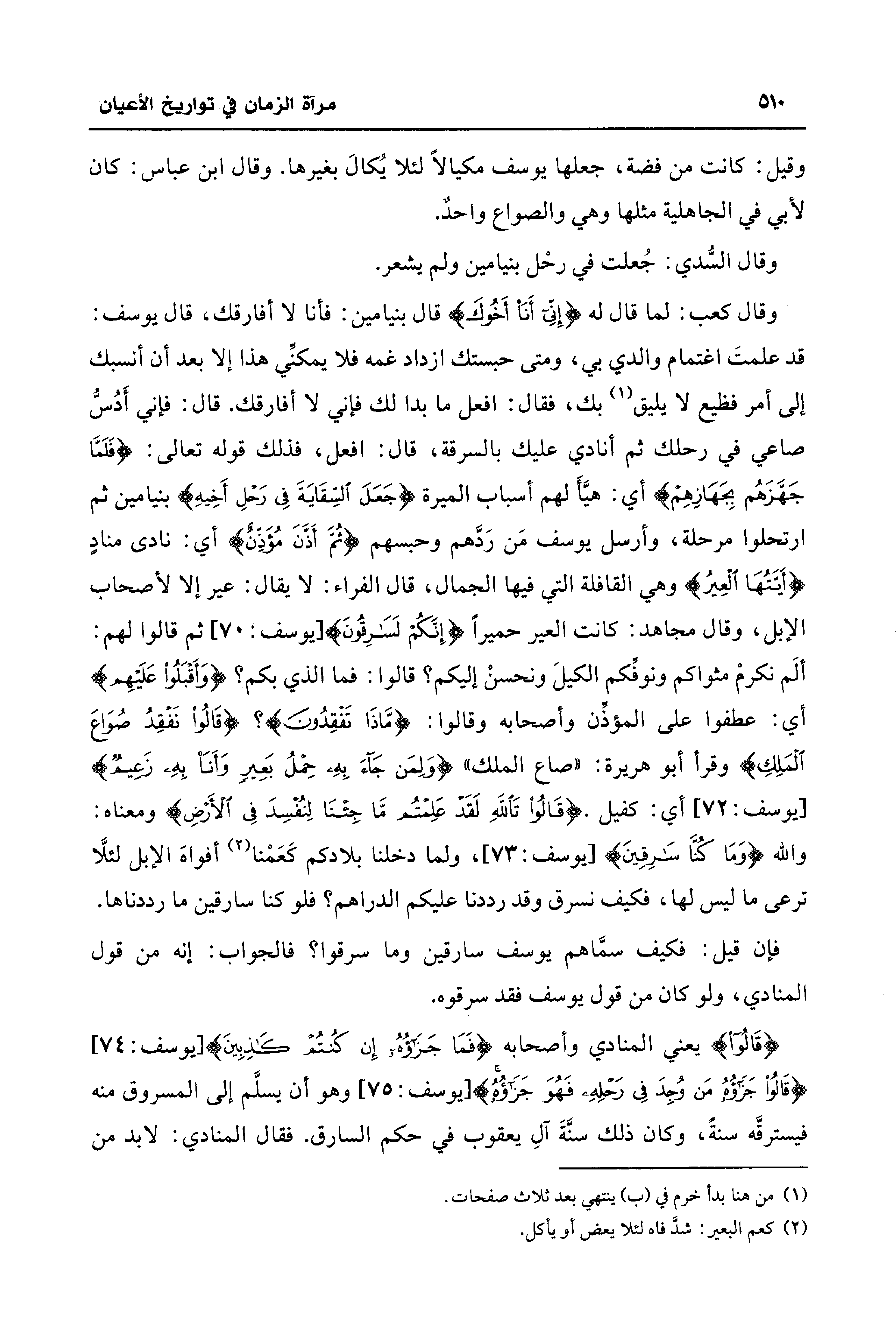 وقال كعب: لما قال له {إِنِّي أَنَا أَخُوكَ} قال بنيامين: فأنا لا أفارقك، قال يوسف: قد علمتَ اغتمام والدي بي، ومتى حبستك ازداد غمه فلا يمكنِّي هذا إلا بعد أن أنسبك إلى أمر فظيع لا يليق (¬1) بك، فقال: افعل ما بدا لك فإني لا أفارقك. قال: فإني أَدُسُّ صاعي في رحلك ثم أنادي عليك بالسرقة، قال: افعل، فذلك قوله تعالى: {فَلَمَّا جَهَزَهُمْ بِجَهَازِهِمْ} أي: هيَّأ لهم أسباب الميرة {جَعَلَ الْسِقَايَةَ في رَحْلِ أَخِيهِ} بنيامين ثم ارتحلوا مرحلة، وأرسل يوسف مَن رَدَّهم وحبسهم {ثُمَّ أَذَّنَ مُؤَذِنٌ} أي: نادى منادٍ {أَيَّتُهَا الْعِيرُ} وهي القافلة التي فيها الجمال، قال الفراء: لا يقال: عير إلا لأصحاب الإبل، وقال مجاهد: كانت العير حميرًا {إِنَّكُمْ لَسَارِقُونَ} [يوسف: 70] ثم قالوا لهم: ألَم نكرمْ مثواكم ونوفِّكم الكيلَ ونحسنْ إليكم؟ قالوا: فما الَّذي بكم؟ {وَأَقْبَلُوا عَلَيهِمْ} أي: عطفوا على المؤذِّن وأصحابه وقالوا: {مَاذَا تَفْقِدُونَ}؟ {نَفْقِدُ صُوَاعَ الْمَلِكِ} وقرأ أبو هريرة: "صاع الملك" {وَلِمَن جَاءَ بِهِ حِمْلُ بَعِيرٍ وَأَنَا بِهِ زَعِيمٌ} [يوسف: 72] أي: كفيل. {قَالُوا تَاللَّهِ لَقَدْ عَلِمْتُمْ مَا جِئْنَا لِنُفْسِدَ فِي الْأَرْضِ} ومعناه: والله {وَمَا كُنَّا سَارِقِينَ} [يوسف: 73]، ولما دخلنا بلادكم كَعَمْنا (¬2) أفواهَ الإبل لئلَّا ترعى ما ليس لها، فكيف نسرق وقد رددنا عليكم الدراهم؟ فلو كنا سارقين ما رددناها.