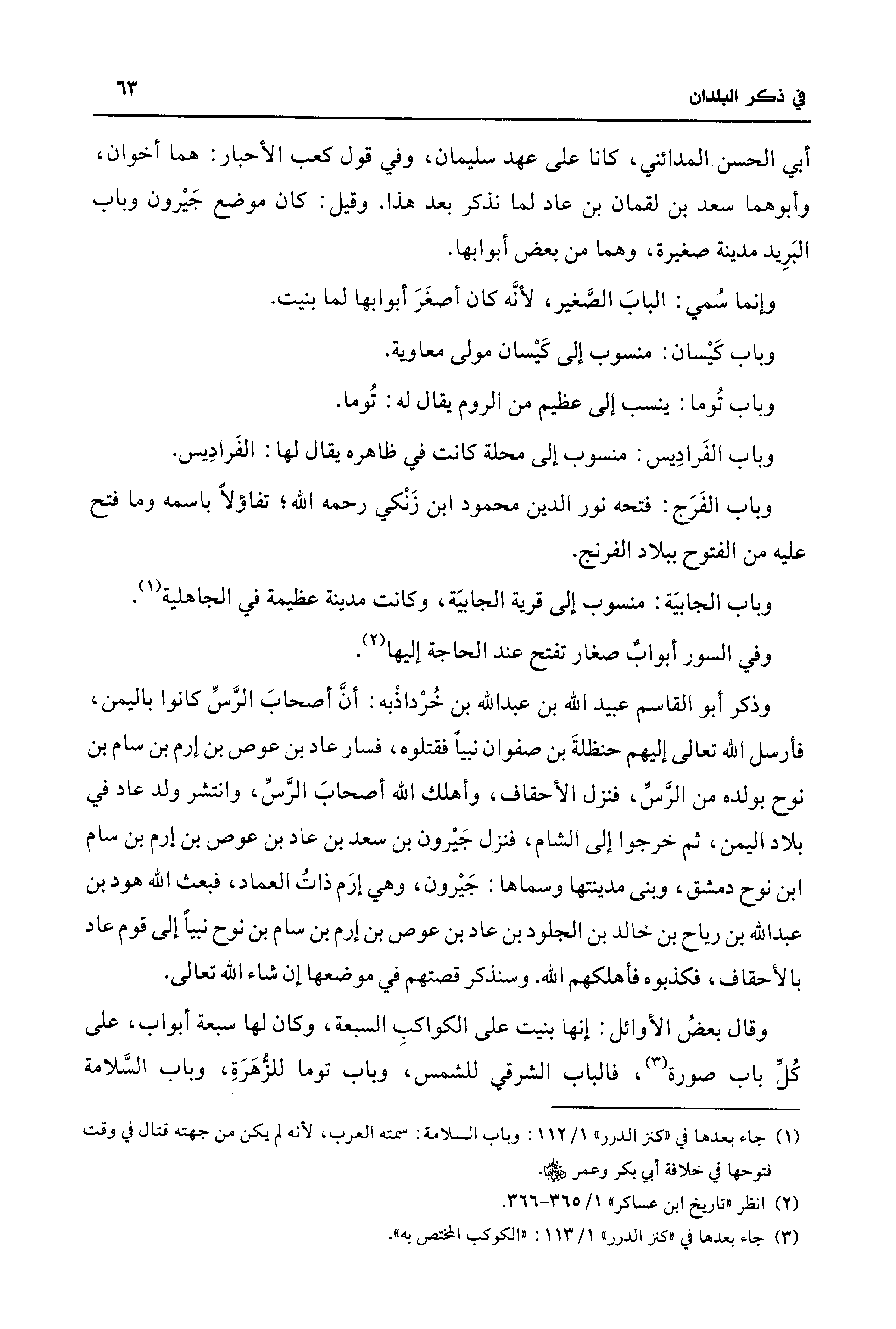أبي الحسن المدائني، كانا على عهد سليمان، وفي قول كعب الأحبار: هما أخوان، وأبوهما سعد بن لقمان بن عاد لما نذكر بعد هذا. وقيل: كان موضع جَيْرون وباب البَرِيد مدينة صغيرة، وهما من بعض أبوابها.