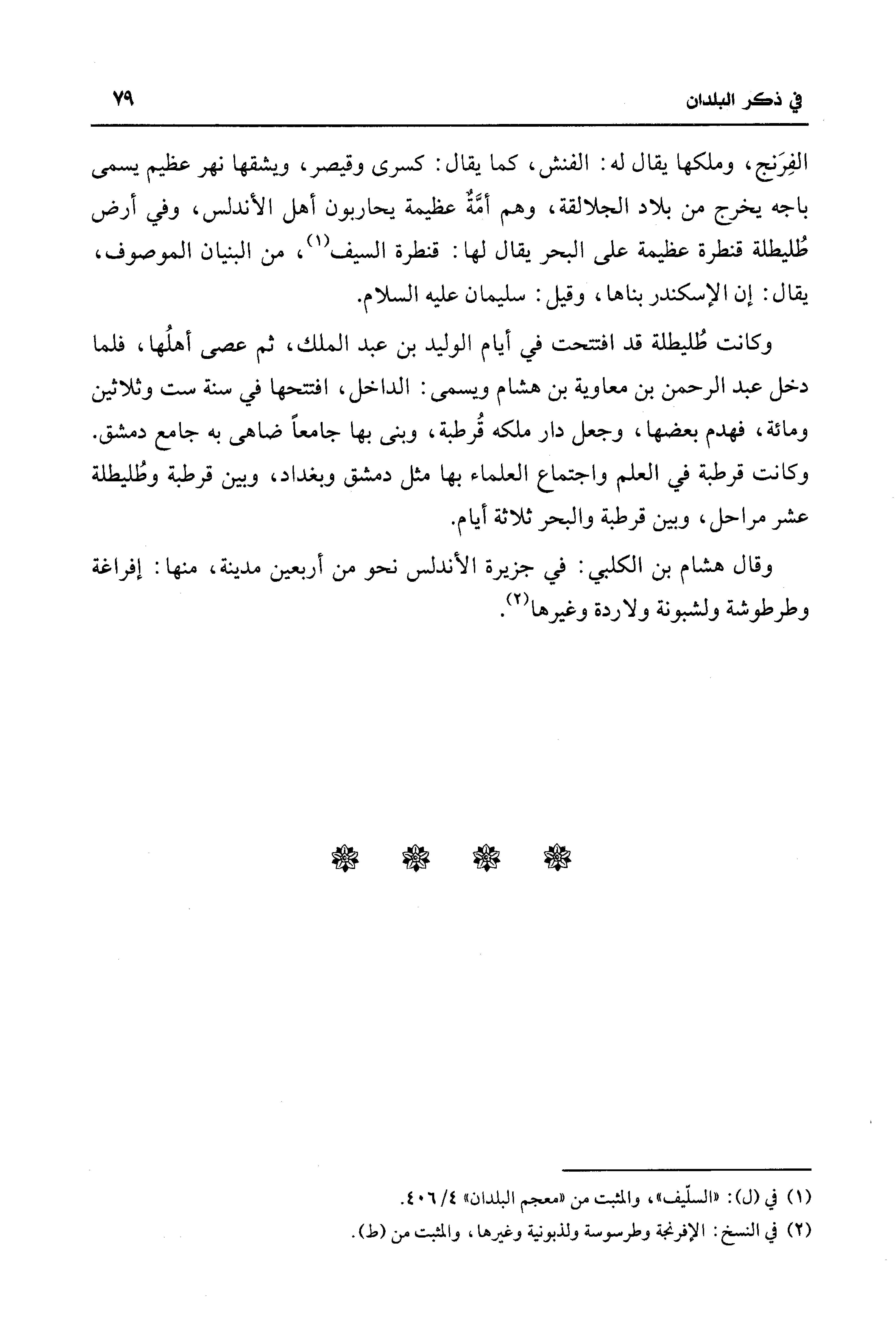 (¬2) في النسخ: الإفرنجة وطرسوسة ولذبونية وغيرها، والمثبت من (ط).