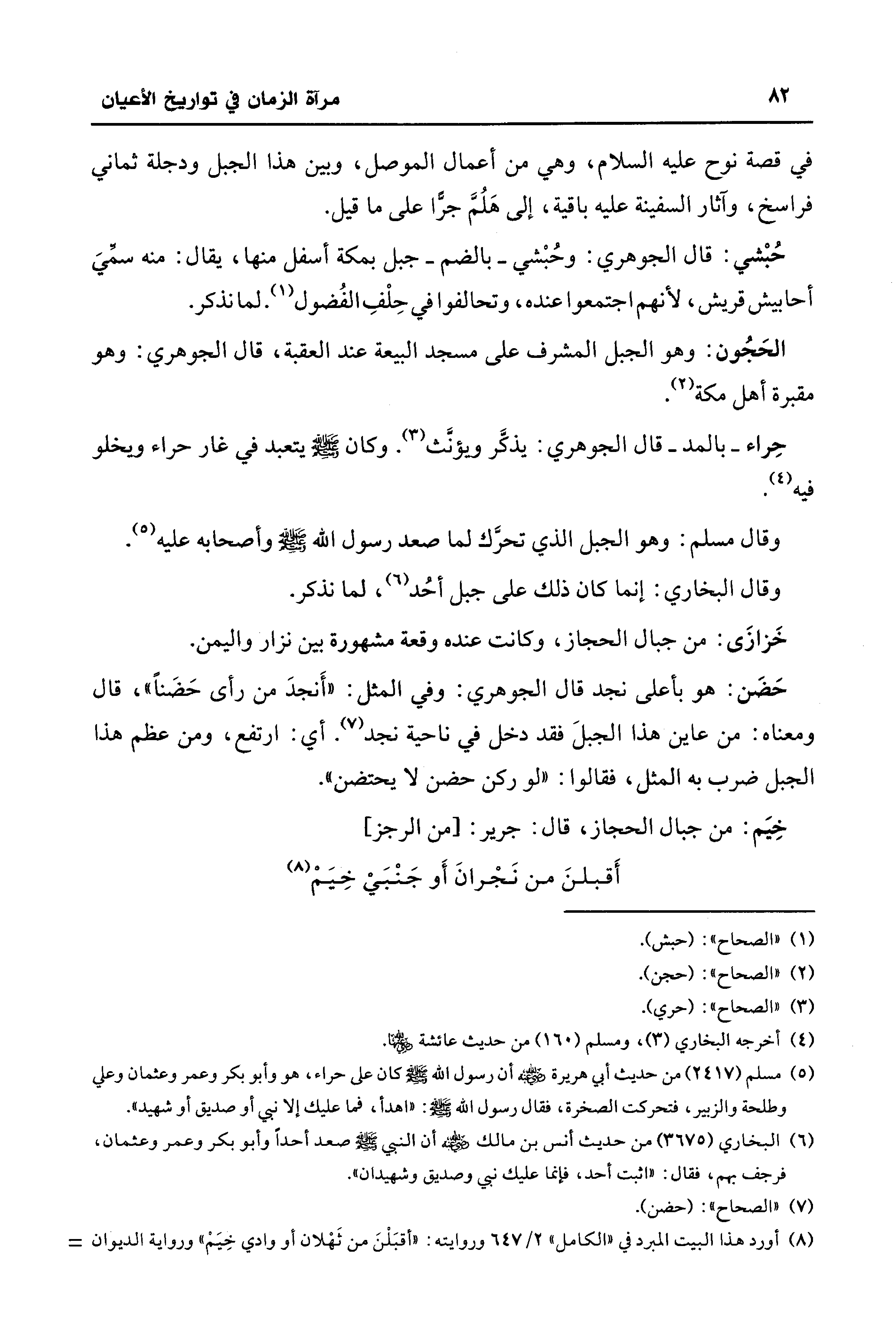 (¬6) البخاري (3675) من حديث أنس بن مالك - رضي الله عنه - أن النبي - صلى الله عليه وسلم - صعد أحدًا وأبو بكر وعمر وعثمان، فرجف بهم، فقال: "اثبت أحد، فإنما عليك نبي وصديق وشهيدان".