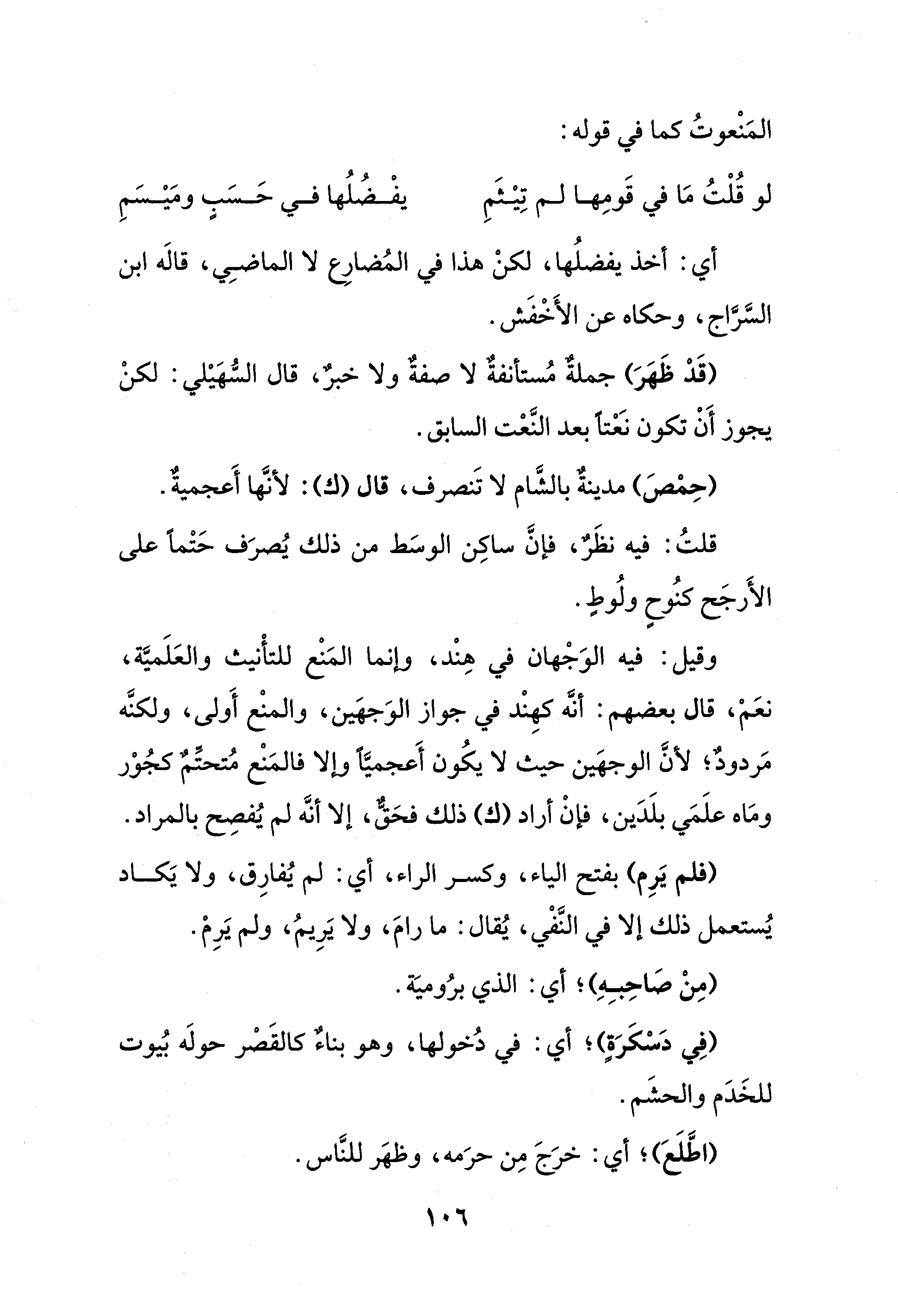 قلتُ: فيه نظَرٌ، فإنَّ ساكِن الوسَط من ذلك يُصرَف حَتْمًا على الأَرجَح كنُوحٍ ولُوطٍ.