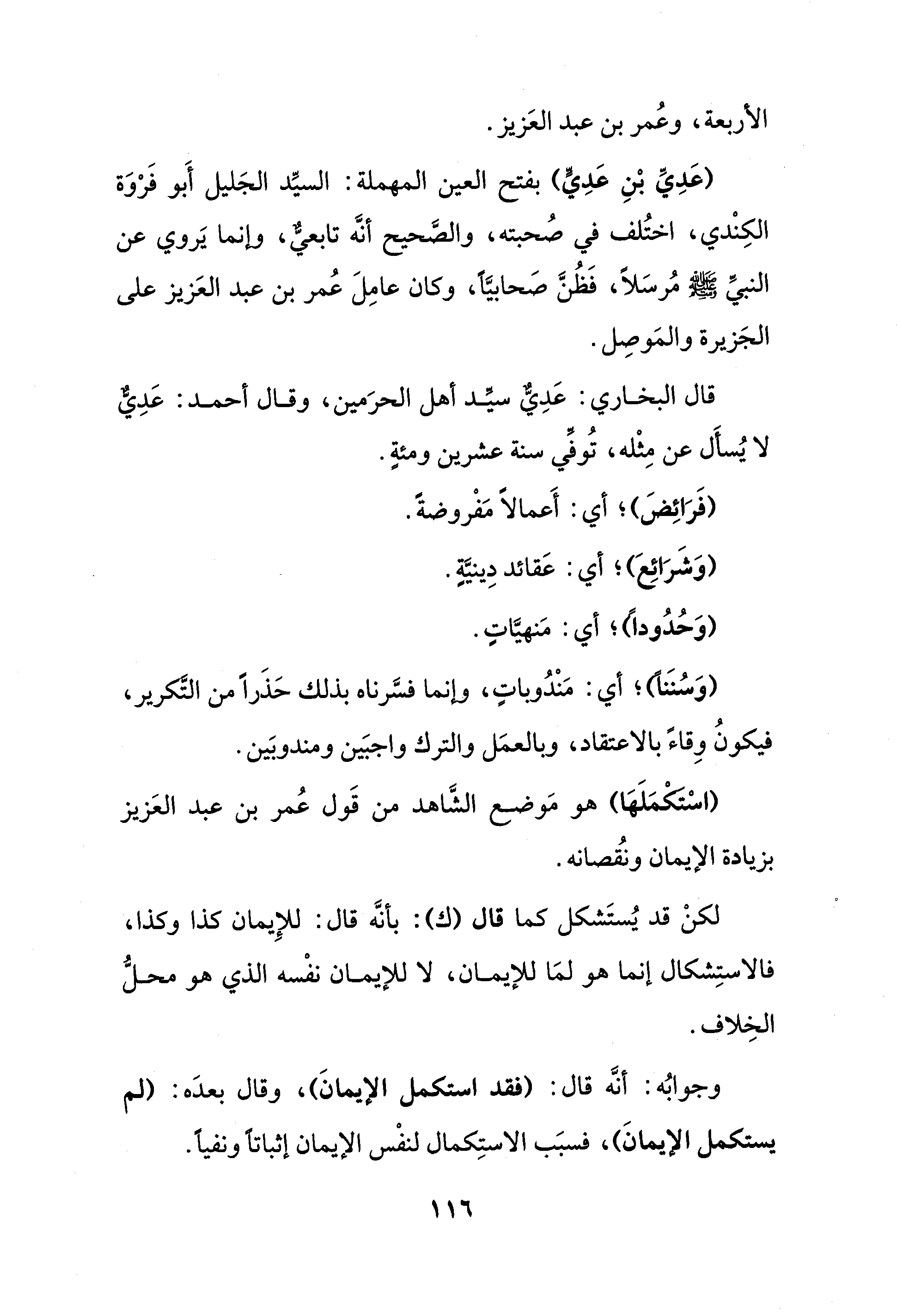 (اسْتكْمَلَهَا) هو مَوضع الشَّاهد من قَول عُمر بن عبد العَزيز بزيادة الإيمان ونُقصانه.