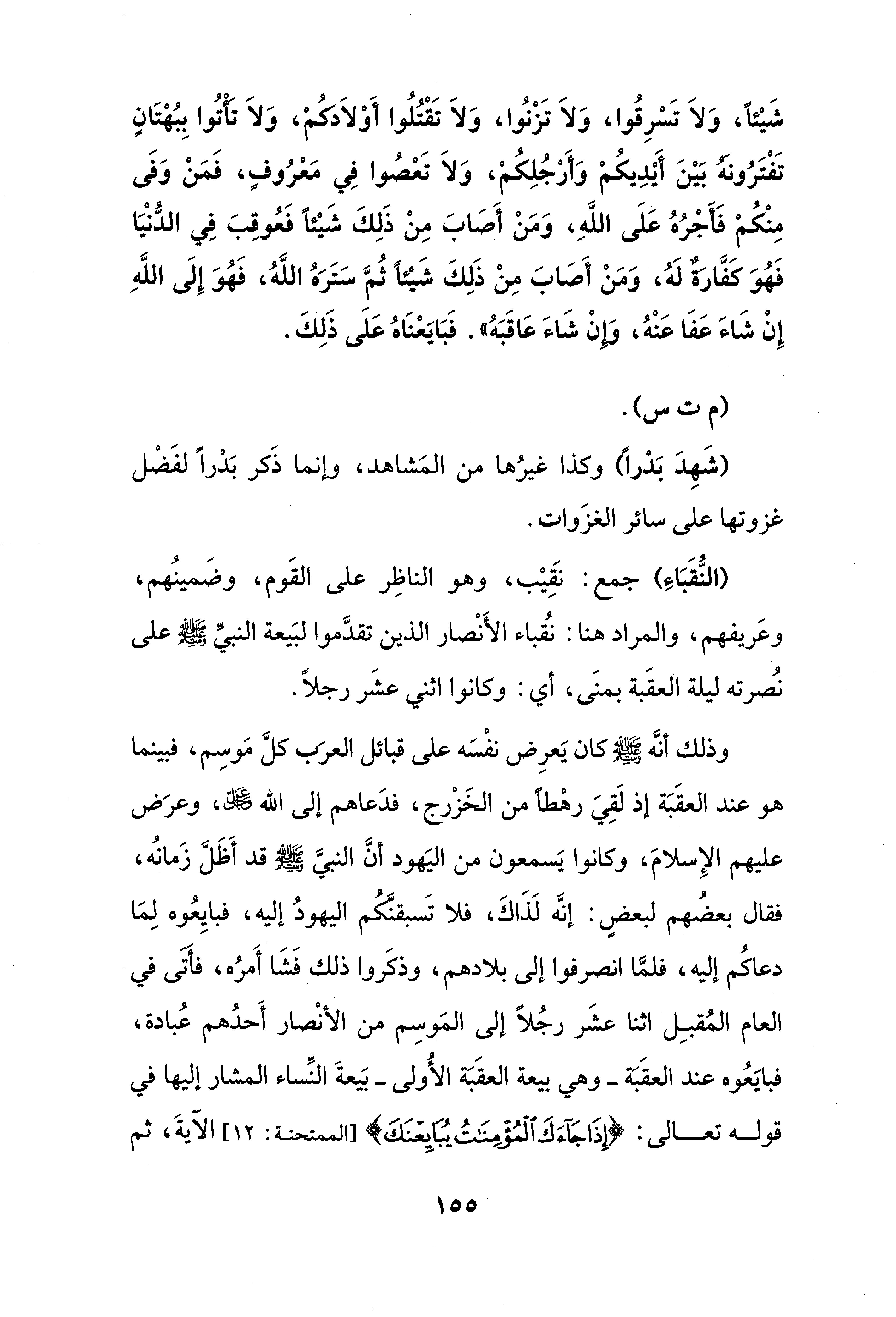 وذلك أنَّه - صلى الله عليه وسلم - كان يَعرِض نفْسَه على قبائل العرَب كلَّ مَوسِم، فبينما هو عند العقَبَة إذ لَقِيَ رهْطًا من الخَزْرج، فدَعاهم إلى الله عز وجل، وعرَض عليهم الإِسلامَ، وكانوا يَسمعون من اليَهود أنَّ النبيَّ صلى الله عليه وسلم قد أَظَلَّ زَمانُه، فقال بعضُهم لبعضٍ: إنَّه لَذَاكَ، فلا تَسبقنَّكُم اليهودُ إليه، فبايِعُوه لِمَا دعاكُم إليه، فلمَّا انصرفوا إلى بلادهم، وذكَروا ذلك فَشَا أَمرُه، فأَتَى في العام المُقبِل اثنا عشَر رجُلًا إلى المَوسِم من الأنْصار أَحدُهم عُبادة، فبايَعُوه عند العقَبَة -وهي بيعة العقَبَة الأُولى- بَيعةَ النِّساء المشار إليها في قوله تعالى: {إِذَا جَاءَكَ اَلمُؤمِنَاتُ يبُايِعْنَكَ} [الممتحنة: 12] الآيةَ، ثم