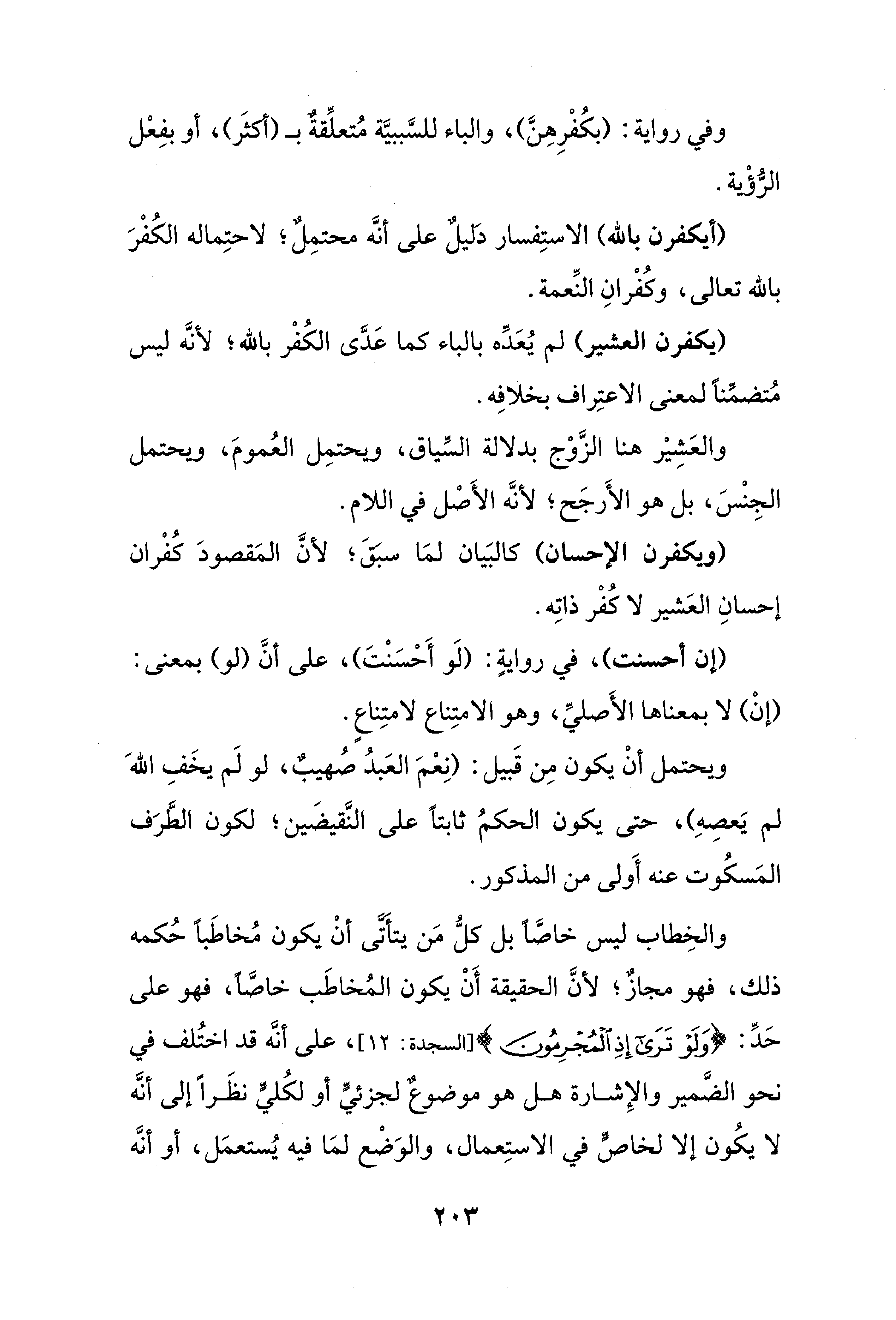 (يكفرن العشير) لم يُعَدِّه بالباء كما عَدَّى الكُفْر بالله؛ لأنَّه ليس مُتضمِّنًا لمعنى الاعتِراف بخلافِه.