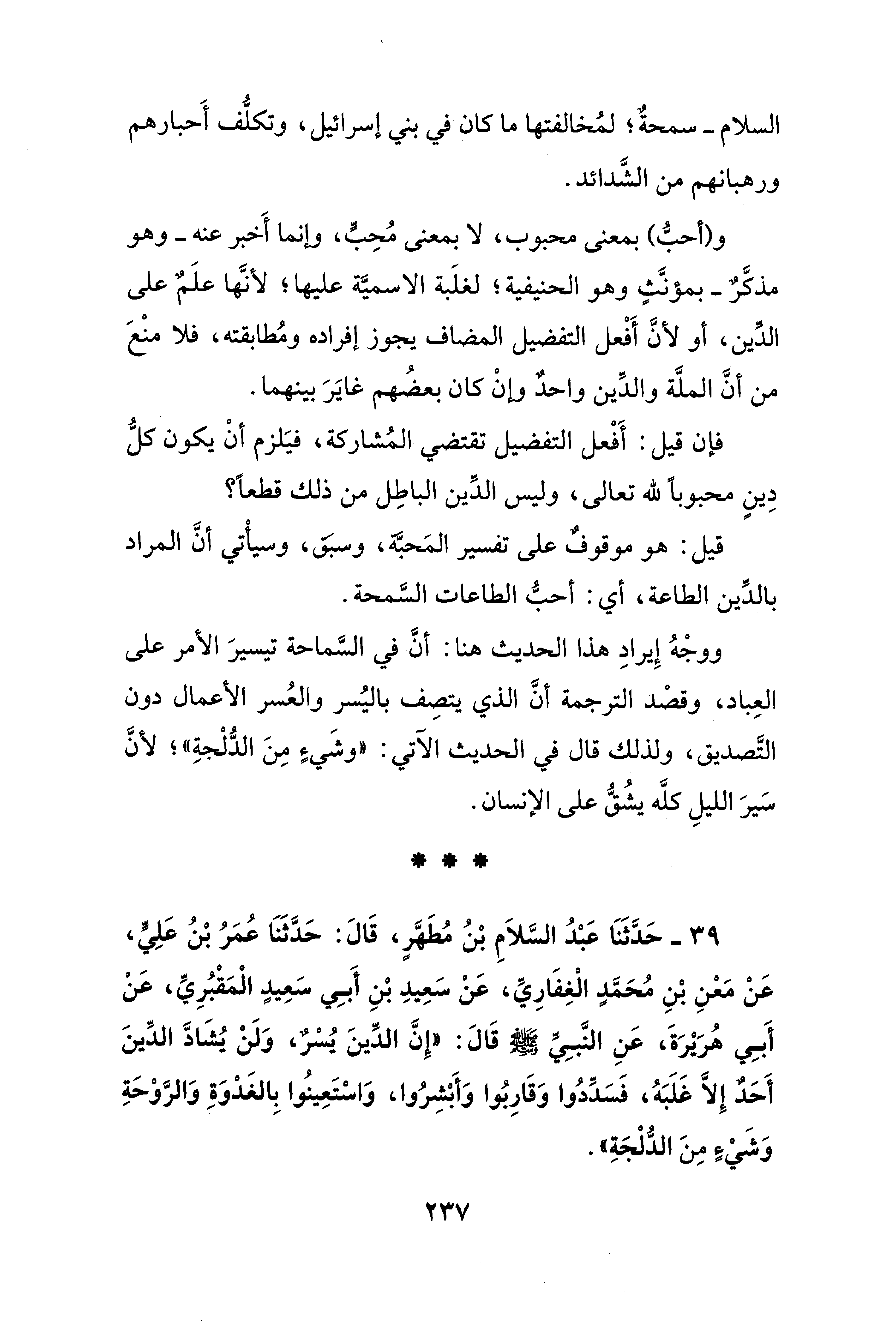 قيل: هو موقوفٌ على تفسير المَحبَّة، وسبَق، وسيأتي أنَّ المراد بالدِّين الطاعة، أي: أحبُّ الطاعات السَّمحة.