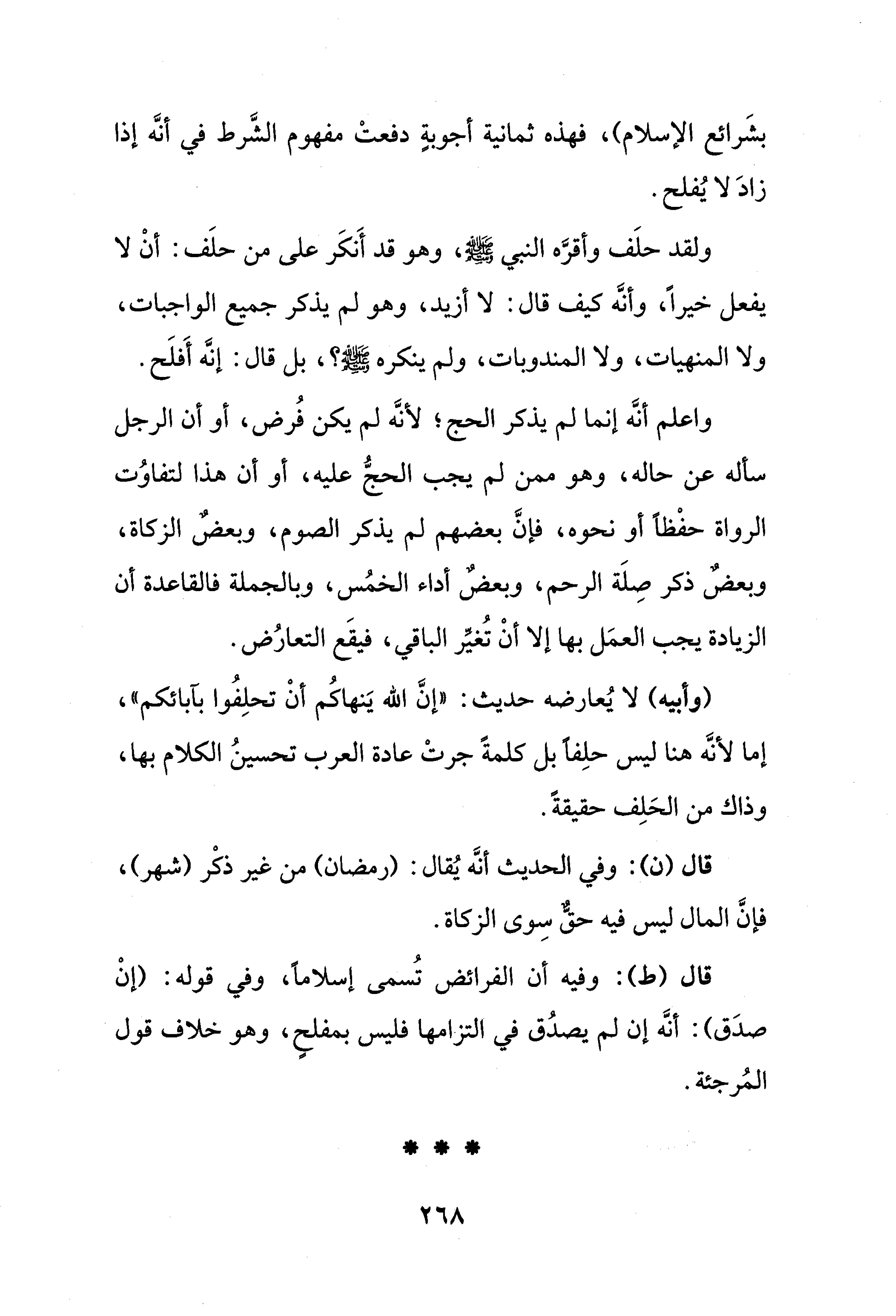 بشَرائع الإسلام)، فهذه ثمانية أجوبةٍ دفعتْ مفهوم الشَّرط في أنَّه إذا زادَ لا يُفلح.
