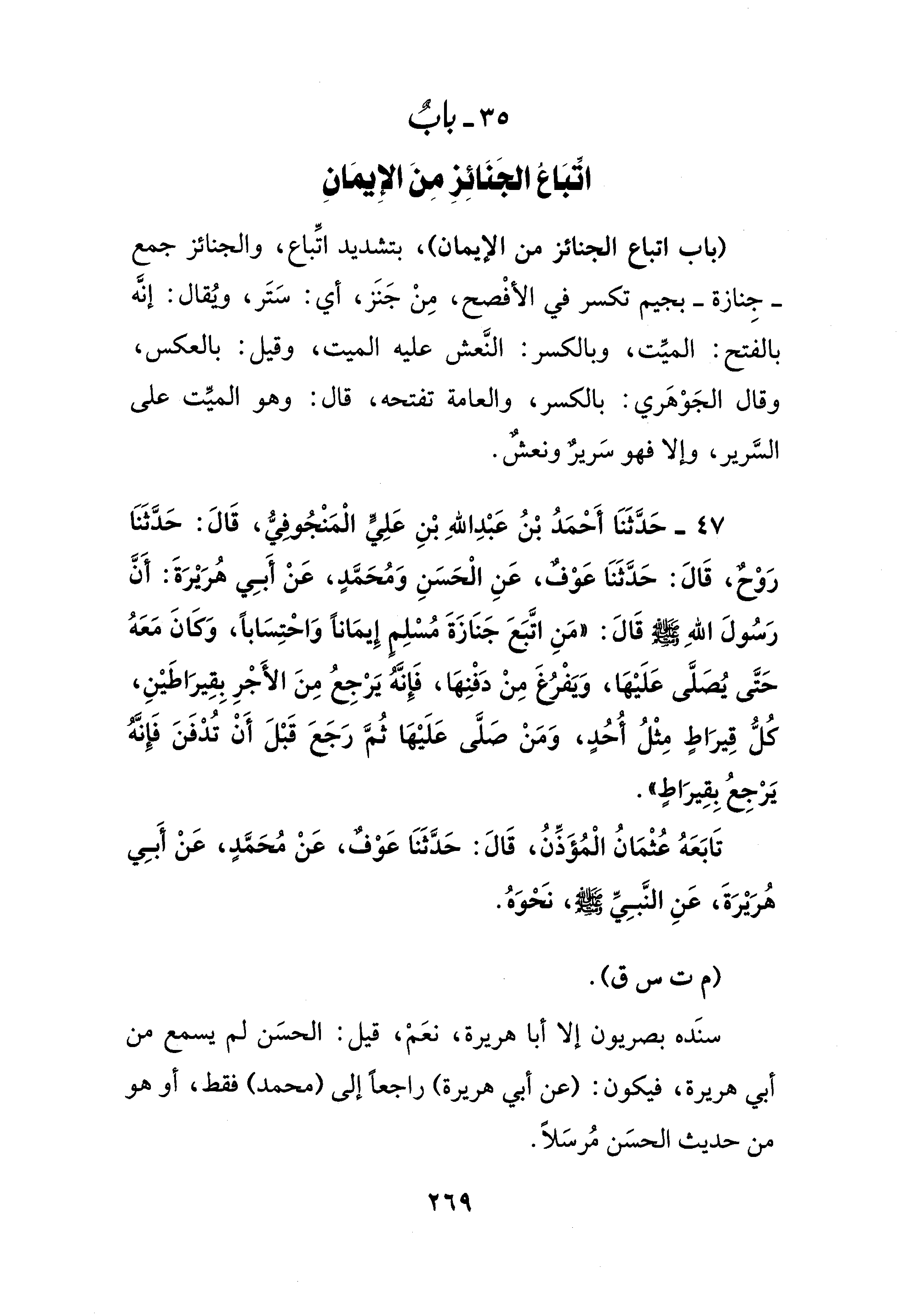 35 - بابٌ اتِّبَاعُ الجَنَائِزِ مِنَ الإِيمَانِ