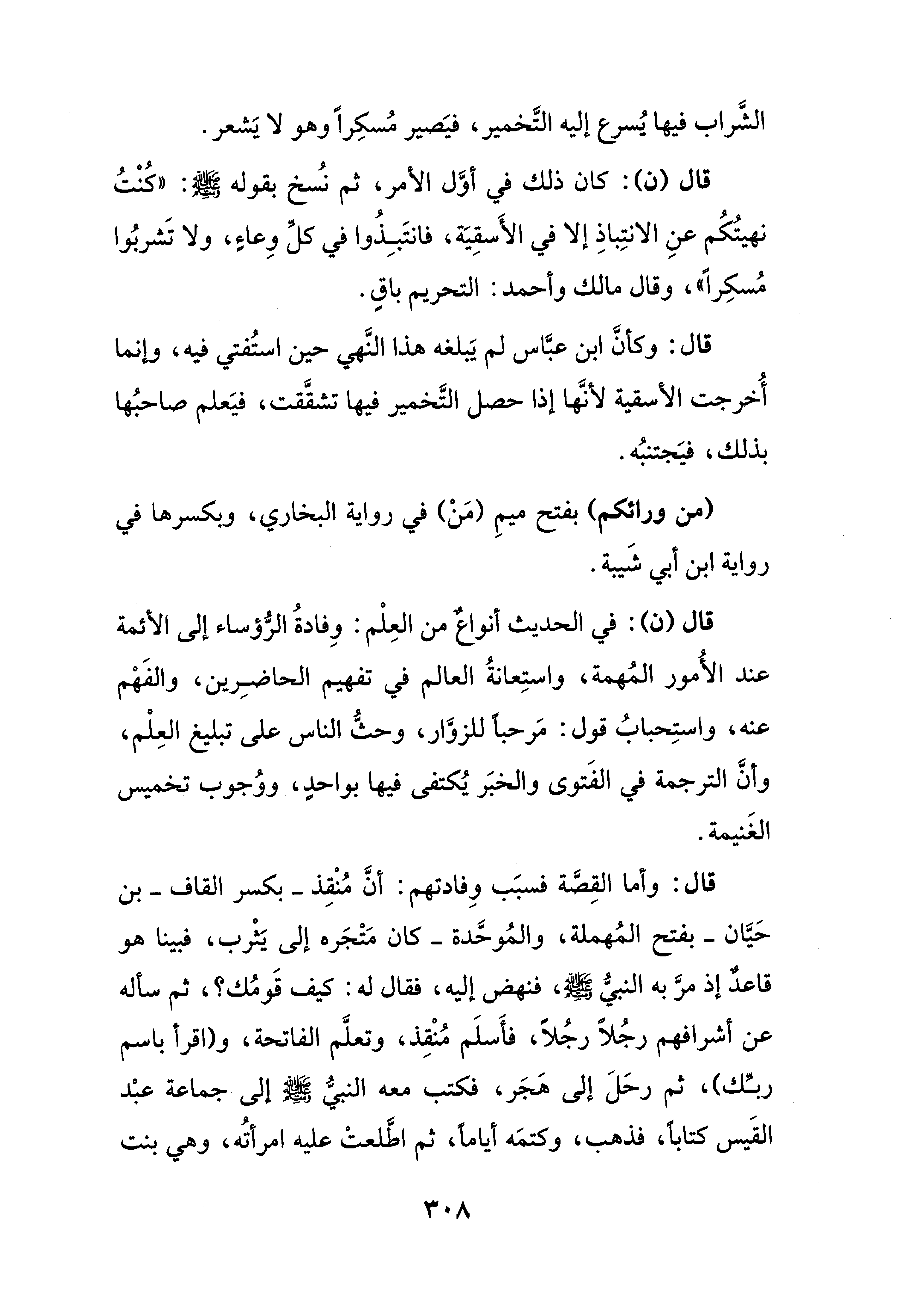 قال (ن): كان ذلك في أوَّل الأمر، ثم نسُخ بقوله - صلى الله عليه وسلم -: "كُنْتُ نهيتُكُم عنِ الانتِباذِ إلا في الأَسقِيَة، فانتَبِذُوا في كلِّ وِعاءٍ، ولا تَشربُوا مُسكِرًا"، وقال مالك وأحمد: التحريم باقٍ.