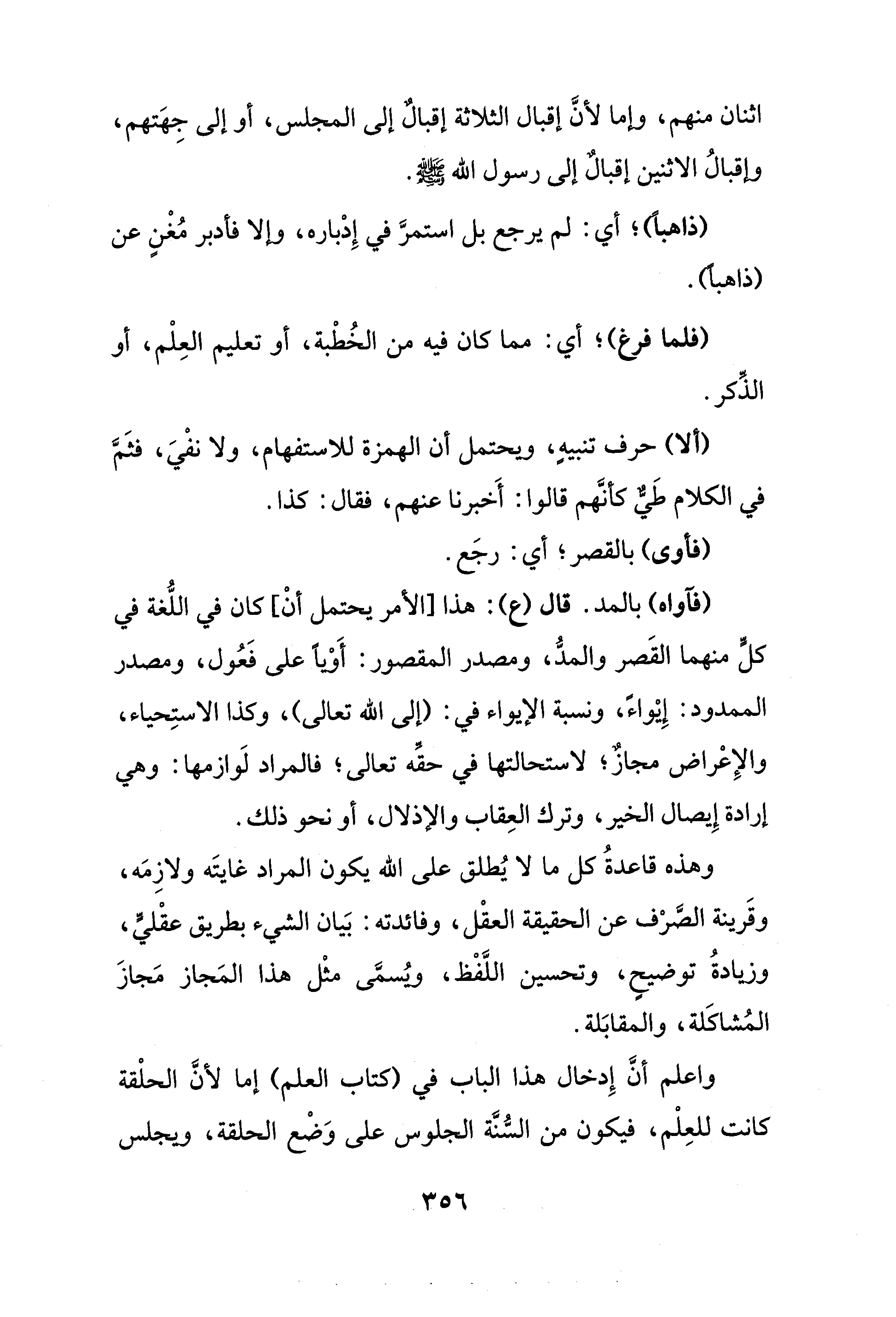 (فآواه) بالمد. قال (ع): هذا [الأمر يحتمل أنْ] كان في اللُّغة في كلٍّ منهما القَصر والمدُّ، وفصدر المقصور: أَوْيًا على فَعُول، ومصدر الممدود: إِيْواءً، ونسبة الإيواء في: (إلى الله تعالى)، وكذا الاستِحياء، والإِعْراض مجازٌ؛ لاستحالتها في حقِّه تعالى؛ فالمراد لَوازمها: وهي إرادة إِيصال الخير، وترك العِقاب والإذلال، أو نحو ذلك.