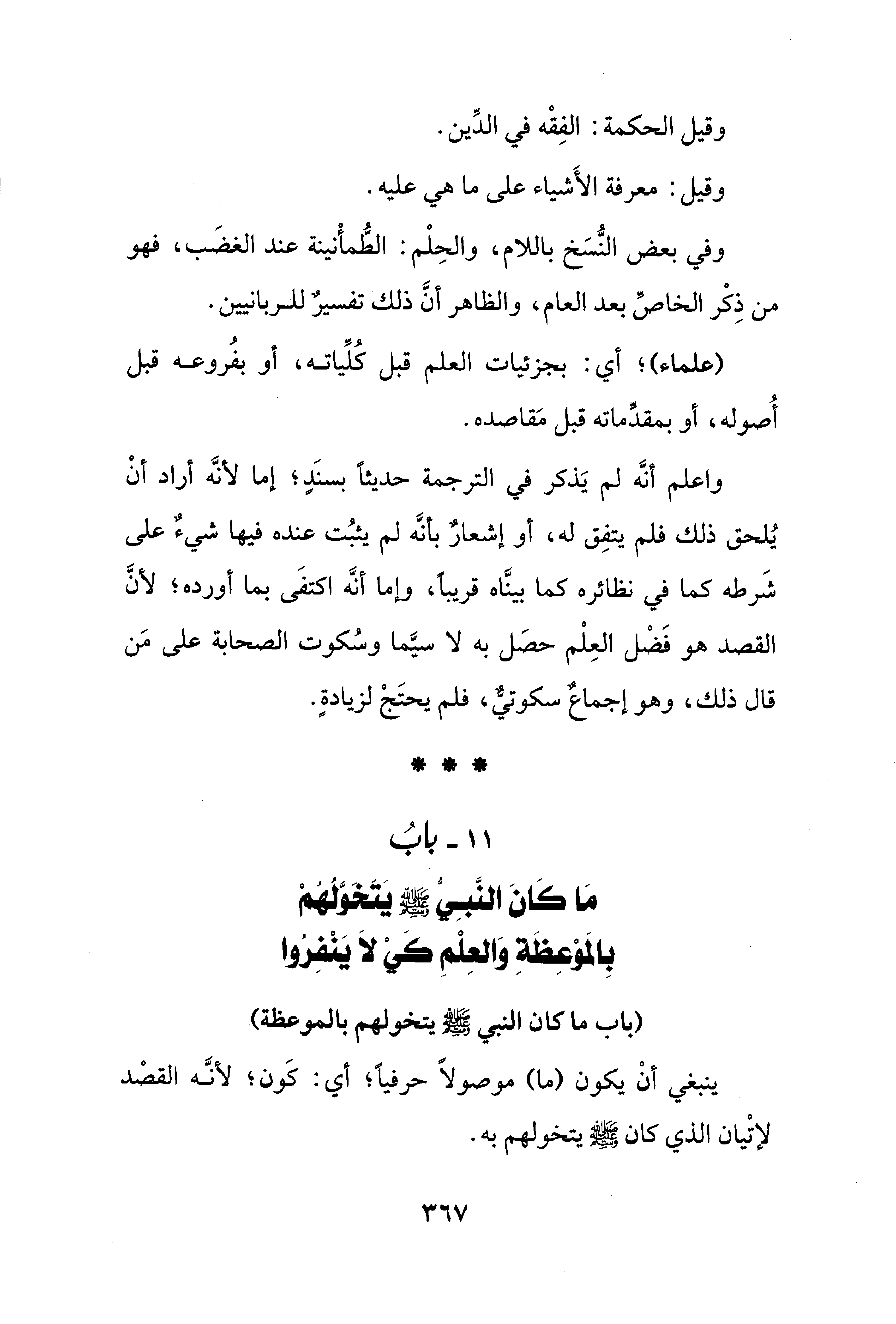 11 - بابُ مَا كانَ النَّبِي - صلى الله عليه وسلم - يَتَخَوَّلُهم بِالمَوْعِظَةِ وَالعِلْمِ كَيْ لاَ يَنْفِرُوا